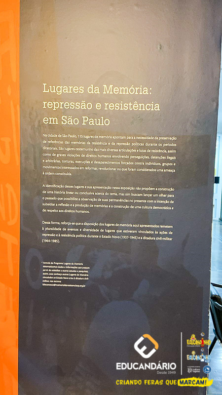 Já no Memorial da Resistência, os estudantes se conectaram com episódios importantes da memória política do Brasil. O memorial reúne testemunhos e registros de ex-presos políticos e familiares de militantes desaparecidos, promovendo a valorização da democracia e dos direitos humanos.