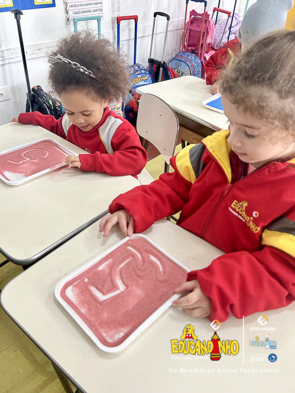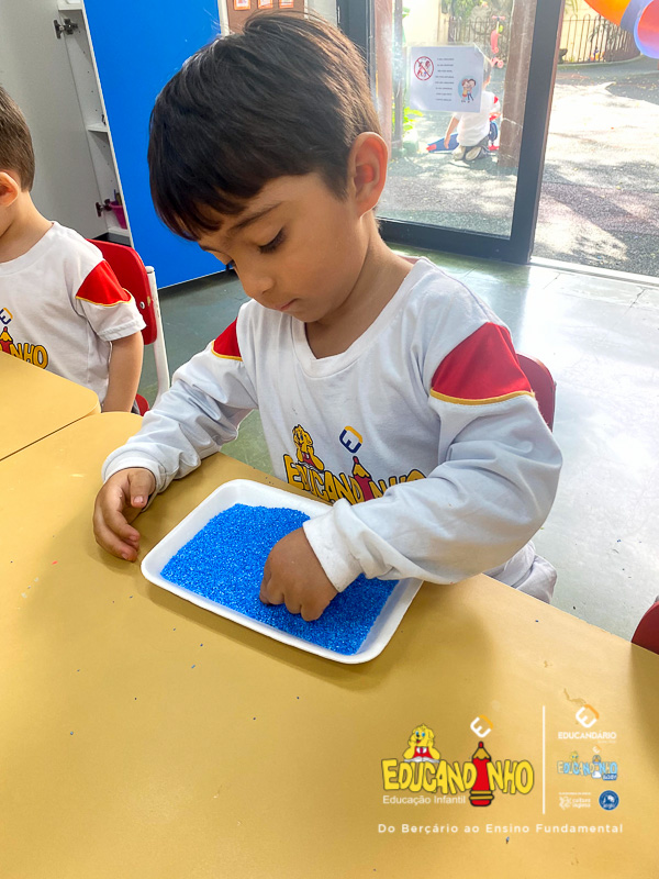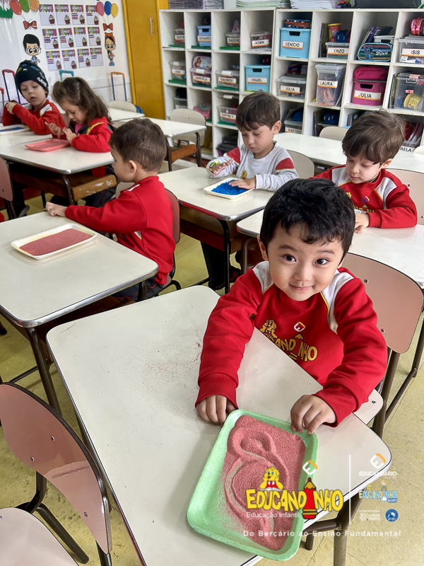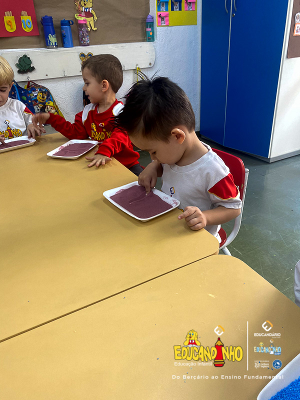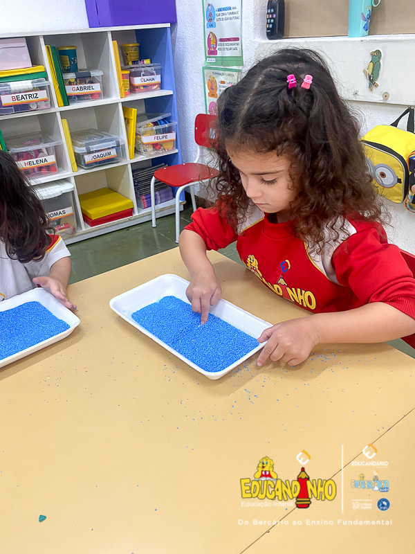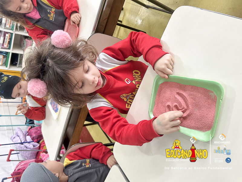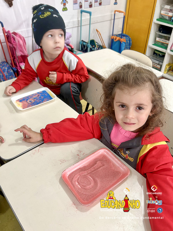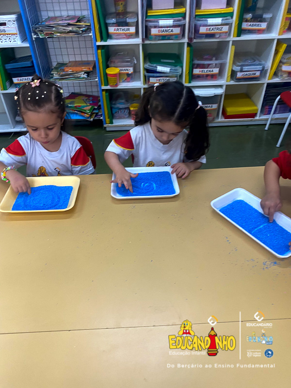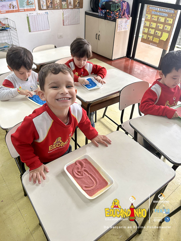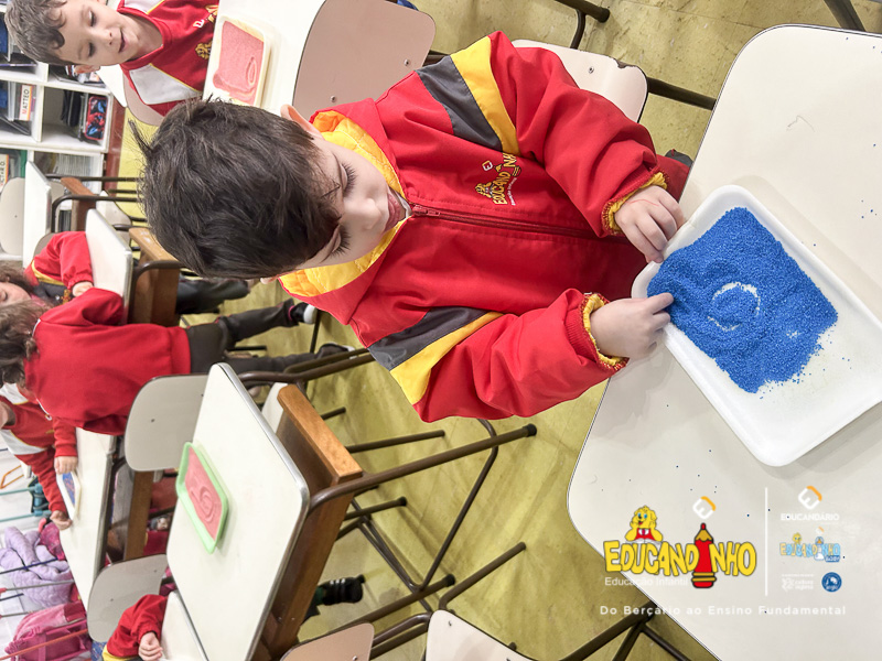 “Aprender nunca foi tão divertido! Utilizando areia colorida, as crianças embarcam em uma experiência sensorial única, onde o toque, as cores e a criatividade se unem para tornar o aprendizado dos números ainda mais significativo. Cada traço desenhado na areia se transforma em uma oportunidade de explorar conceitos matemáticos de forma lúdica e prazerosa. Ao brincar e interagir com os materiais, os pequenos desenvolvem habilidades motoras, estimulam a concentração e despertam o interesse pelo conhecimento de maneira natural e espontânea. Uma forma vibrante e encantadora de transformar a matemática em uma verdadeira aventura!”