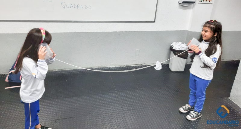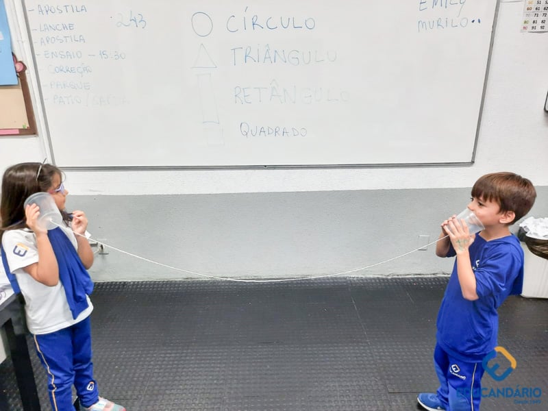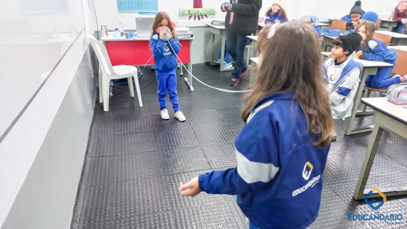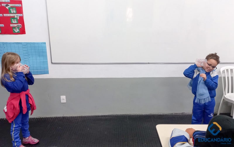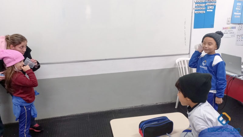 “-Alô… Alô…. Aqui quem fala é do primeiro ano. ” Se aprender na teoria é bom, imagine na prática. Brincando e aprendendo sobre os sons e o sentido da audição, o nosso 1º ano participa no projeto – 05 sentidos.