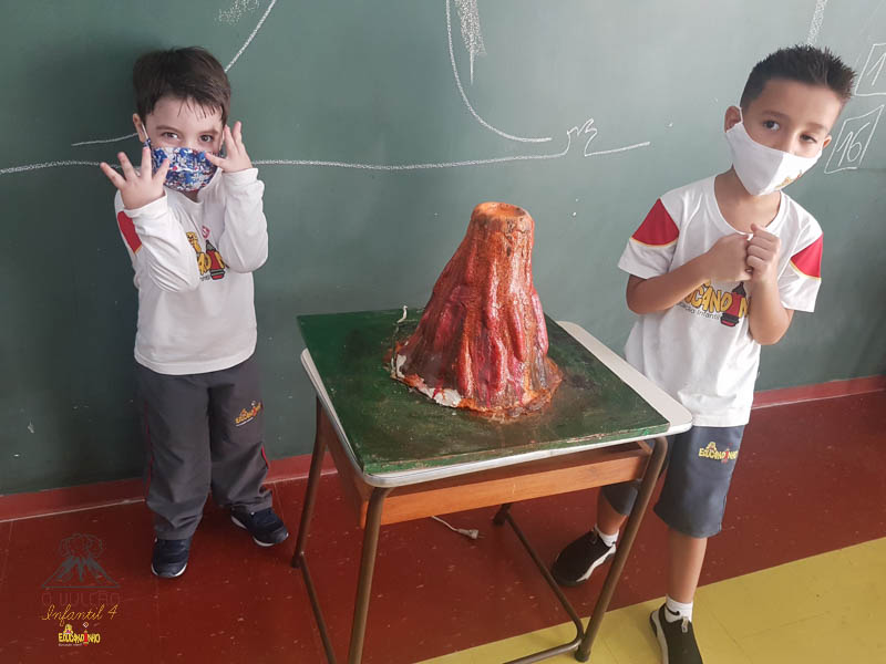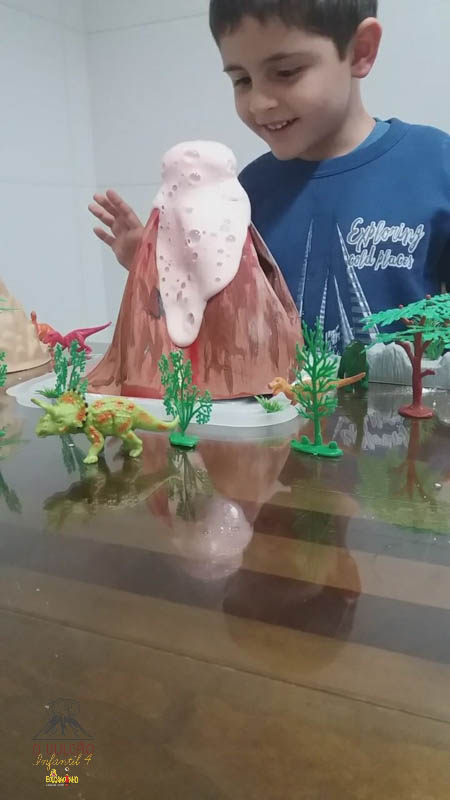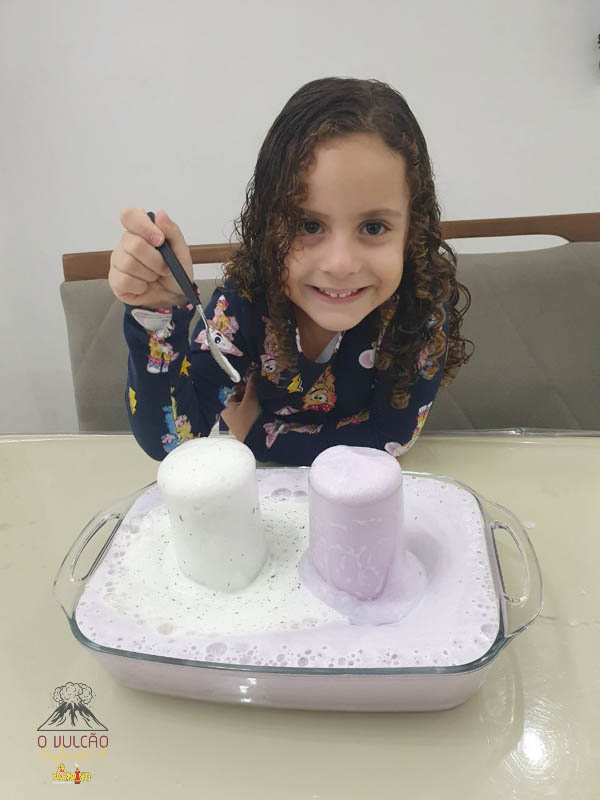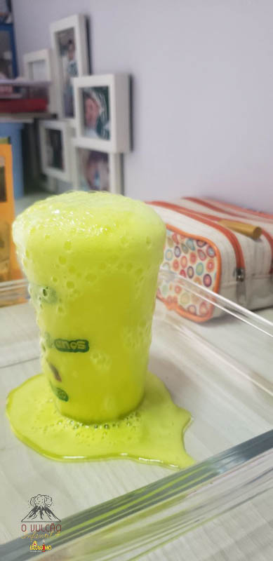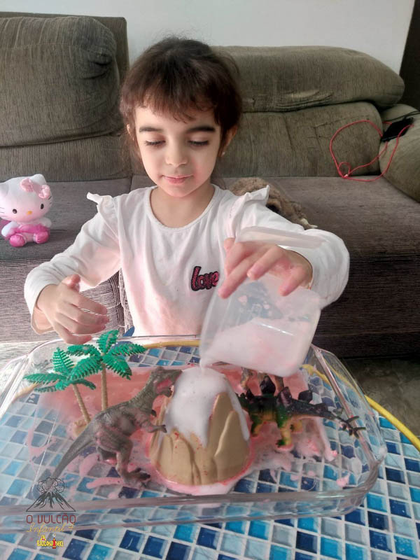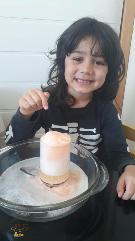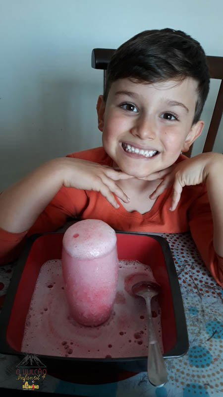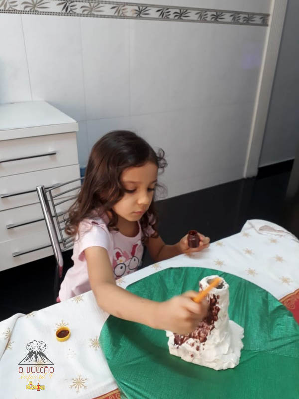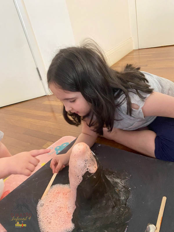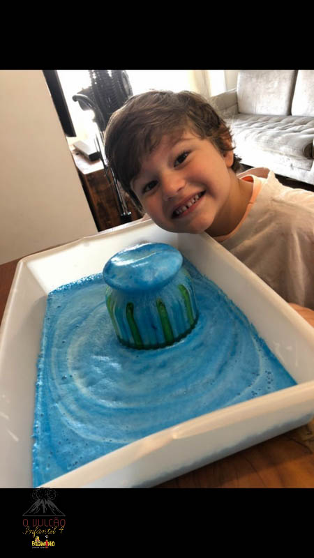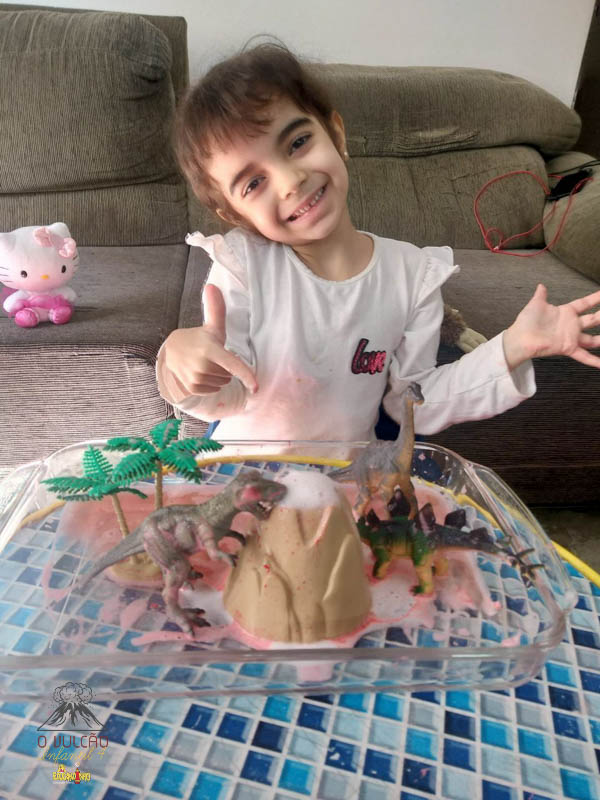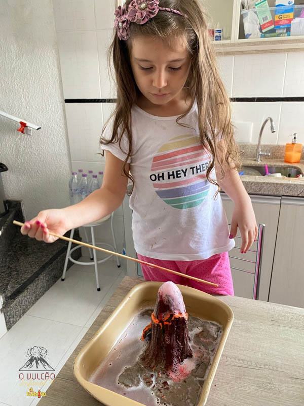emoção de um vulcão em erupção, com a simulação que aconteceu na sala de aula e também na aula on-line.