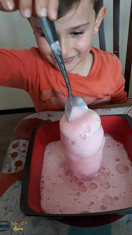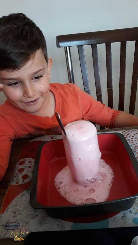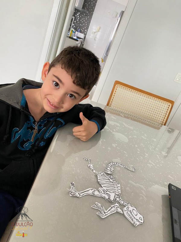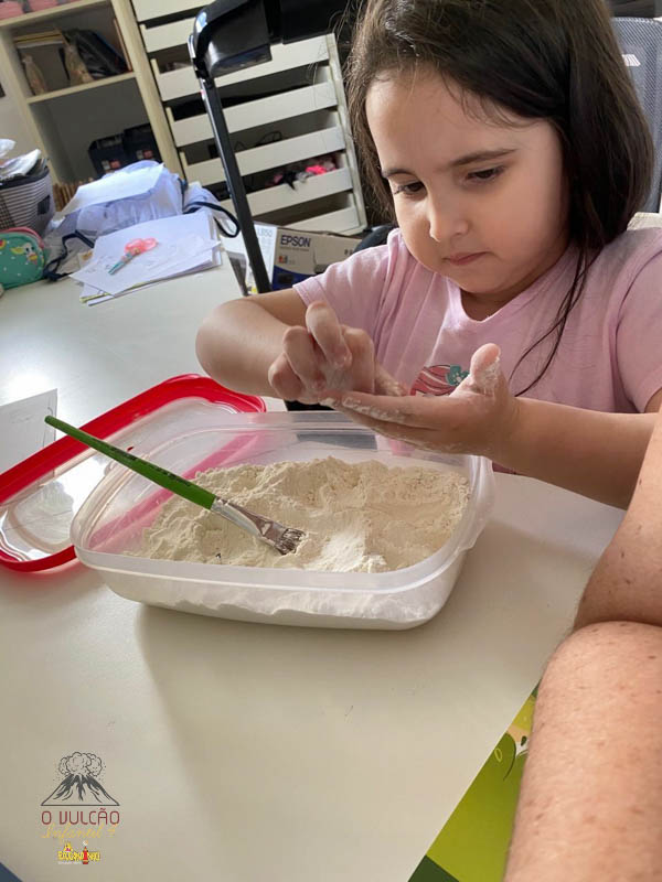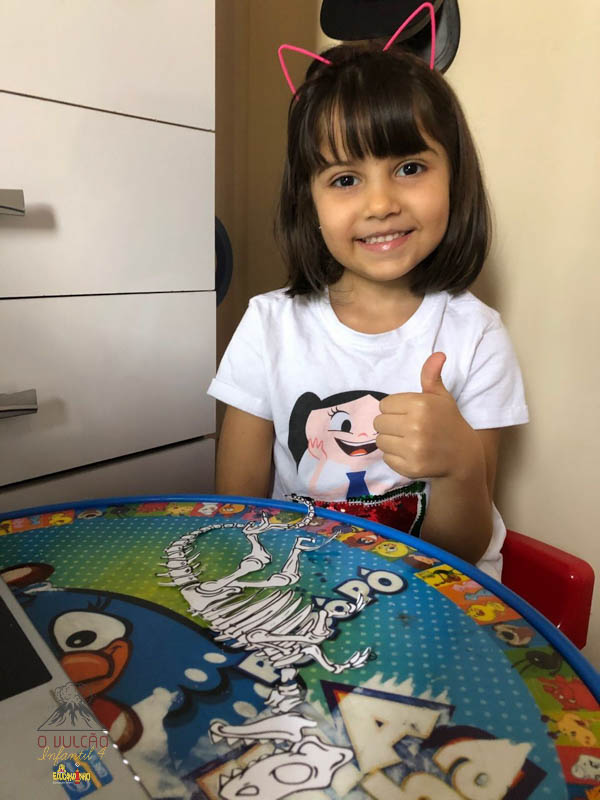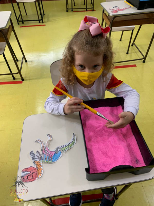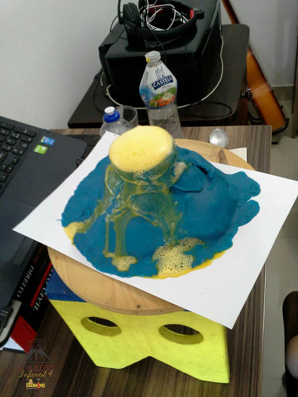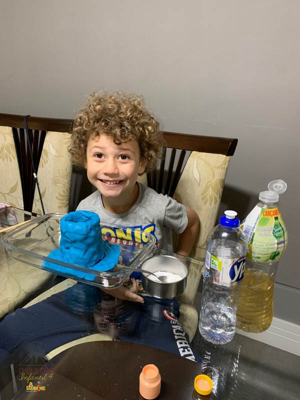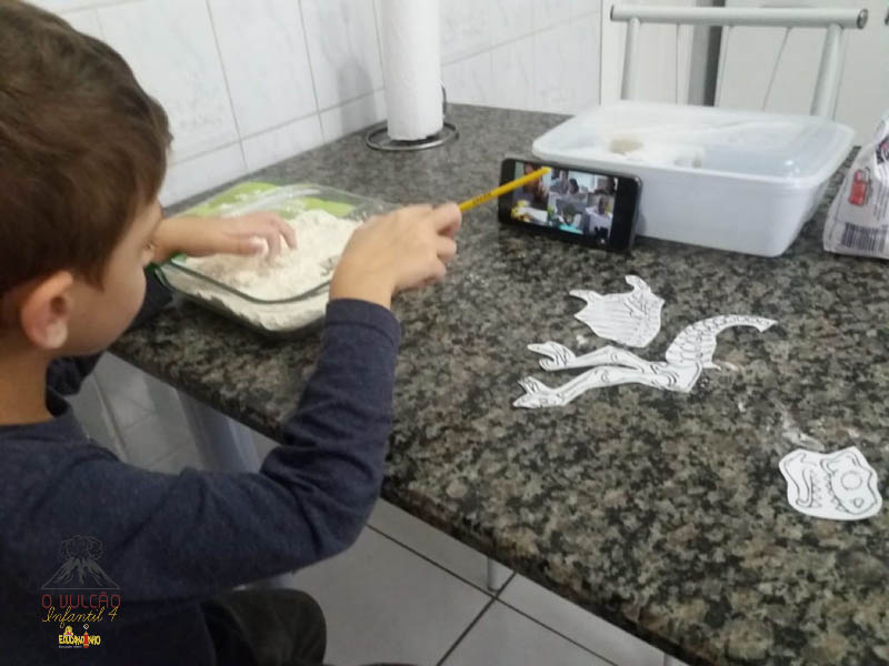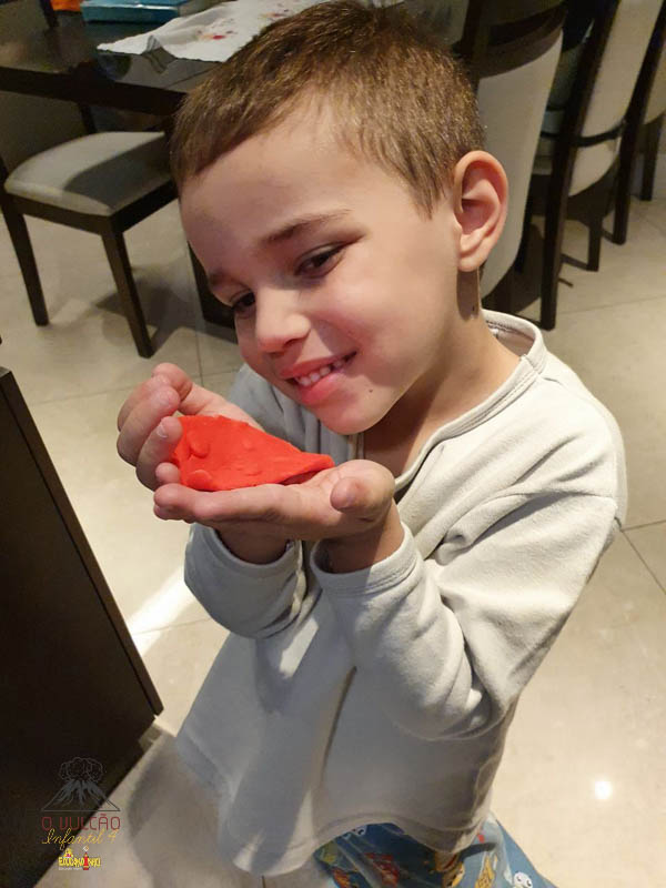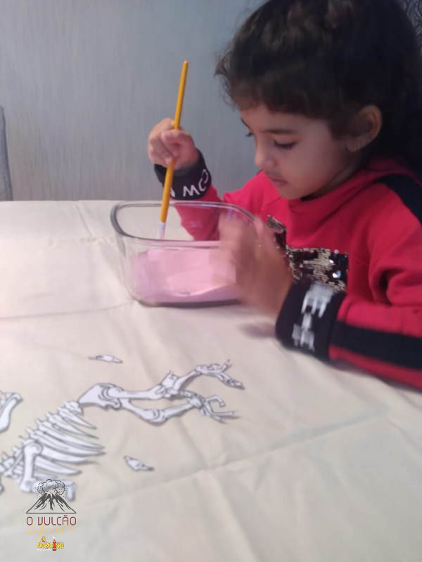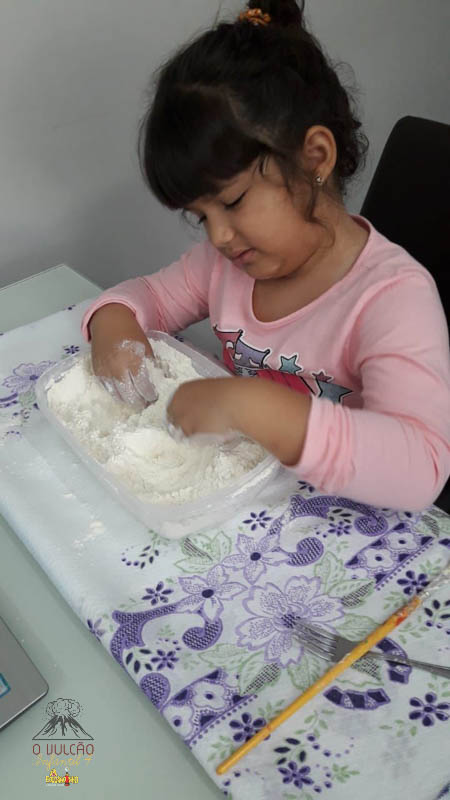 emoção de um vulcão em erupção, com a simulação que aconteceu na sala de aula e também na aula on-line.