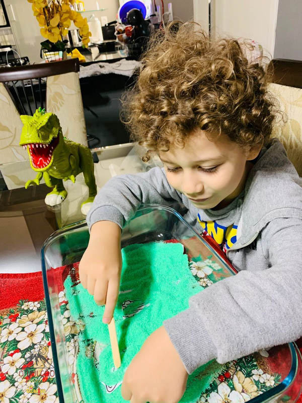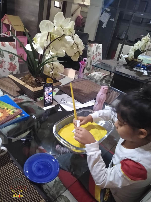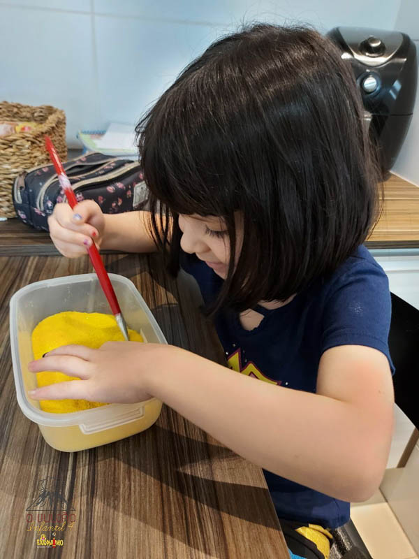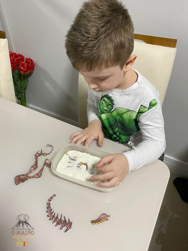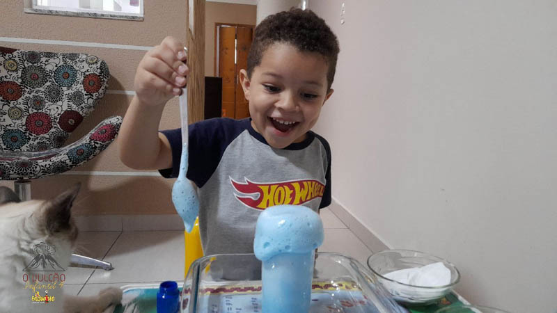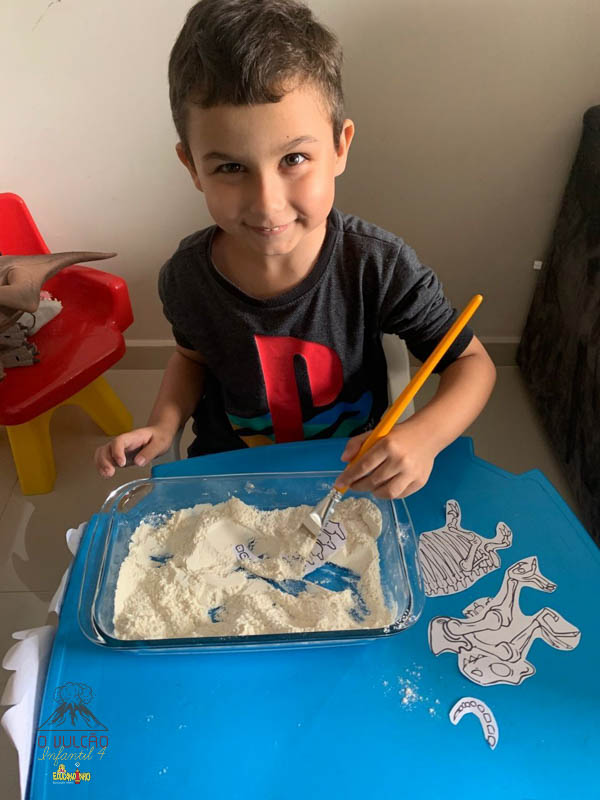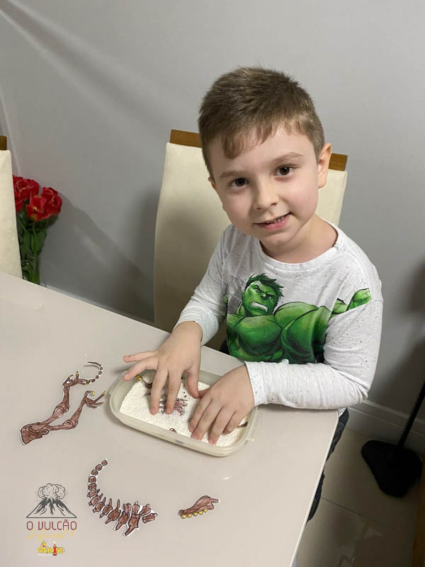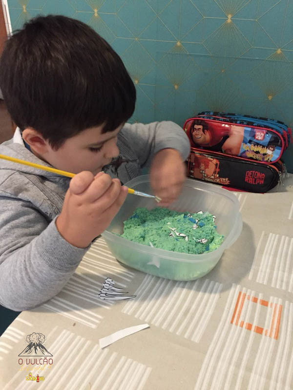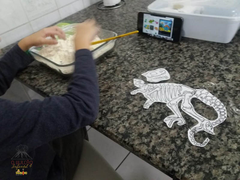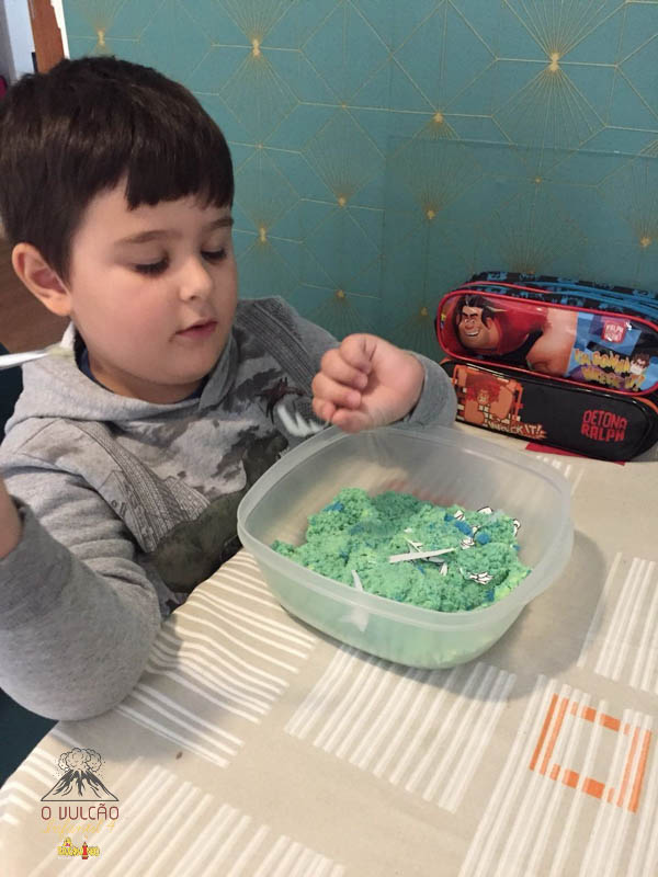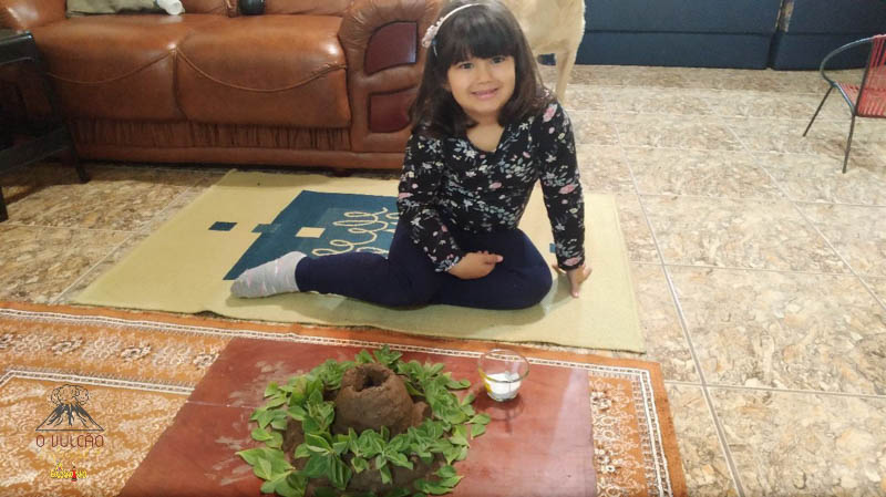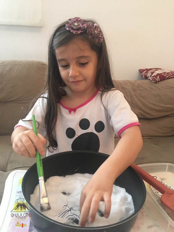 emoção de um vulcão em erupção, com a simulação que aconteceu na sala de aula e também na aula on-line.