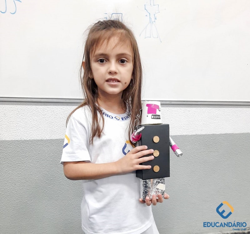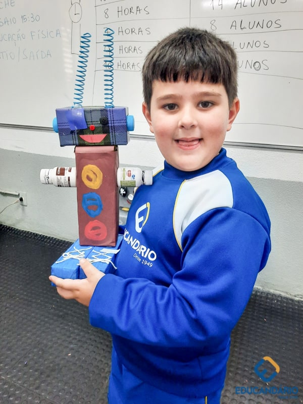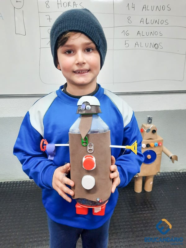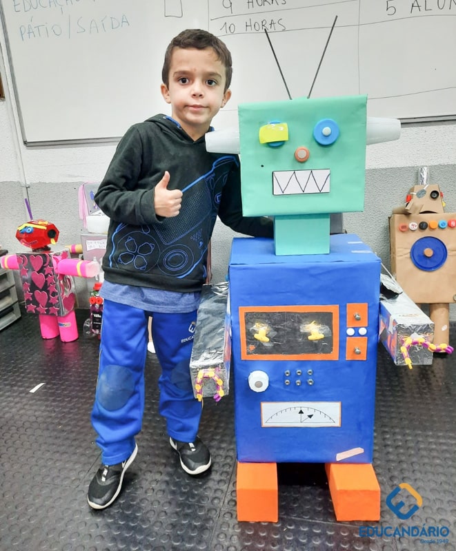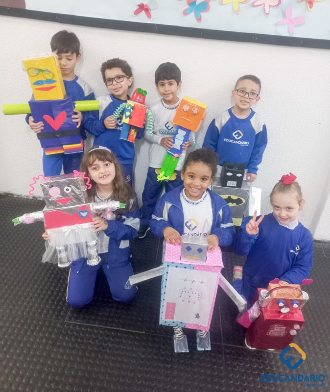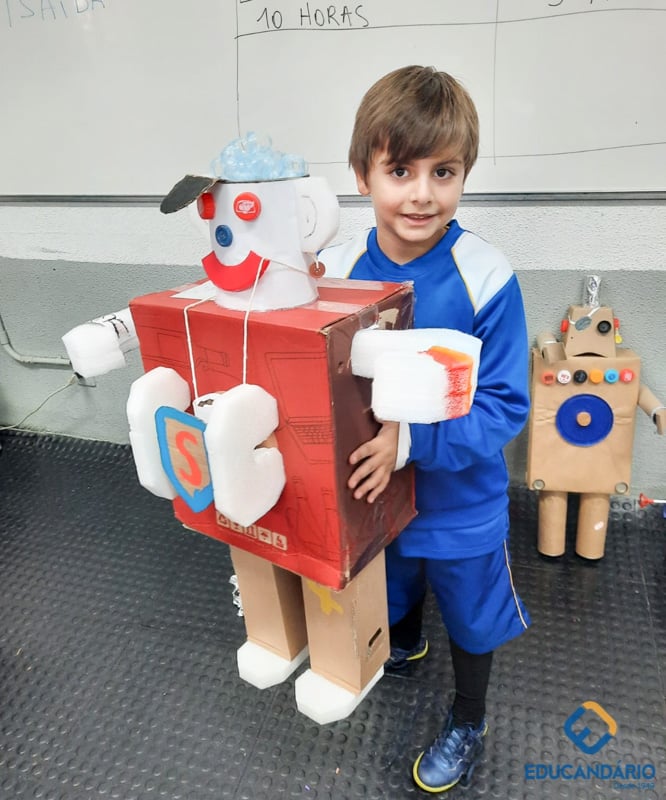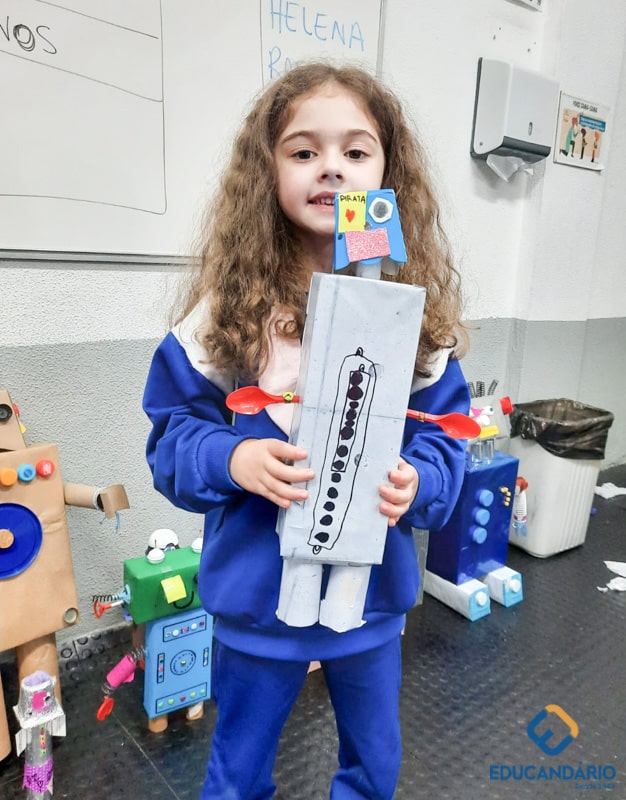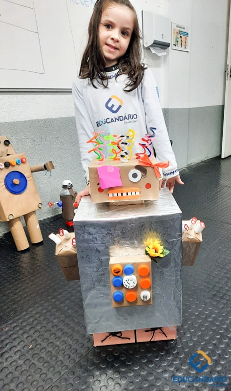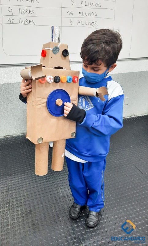 Confira a confecção de Robô e o aprendizado na prática dos sentidos – direito e esquerdo do nosso maravilhoso 1º ano.