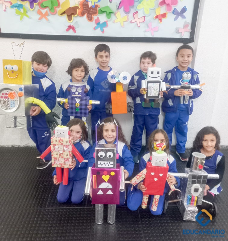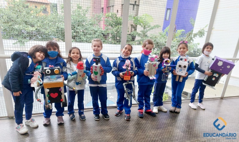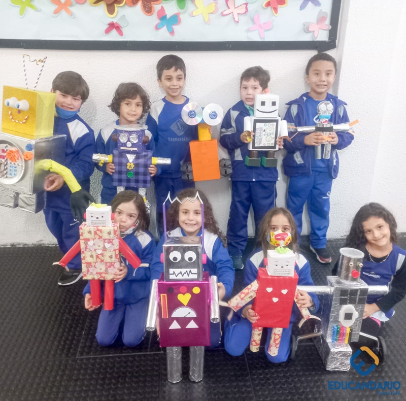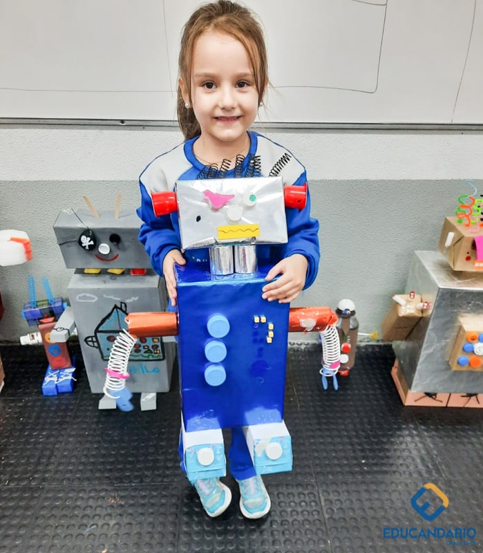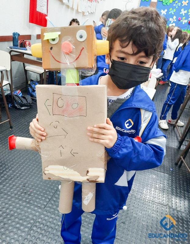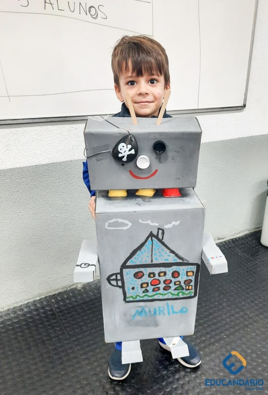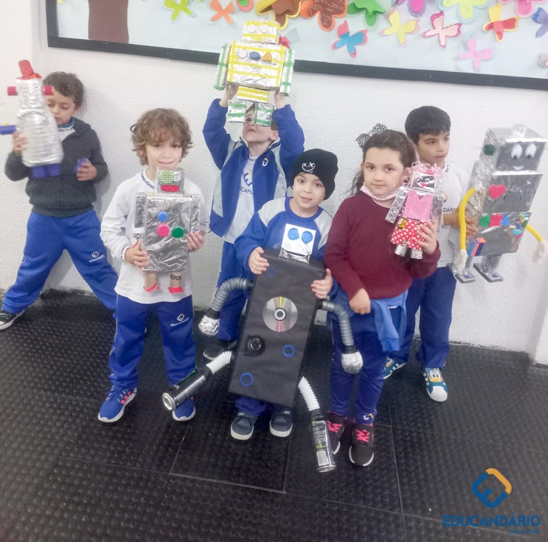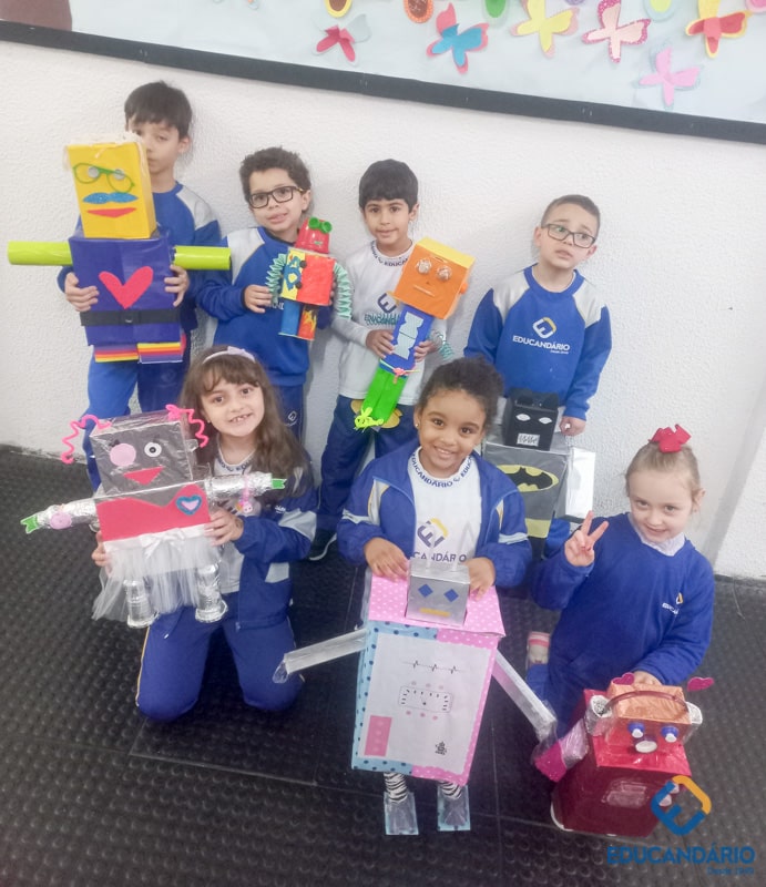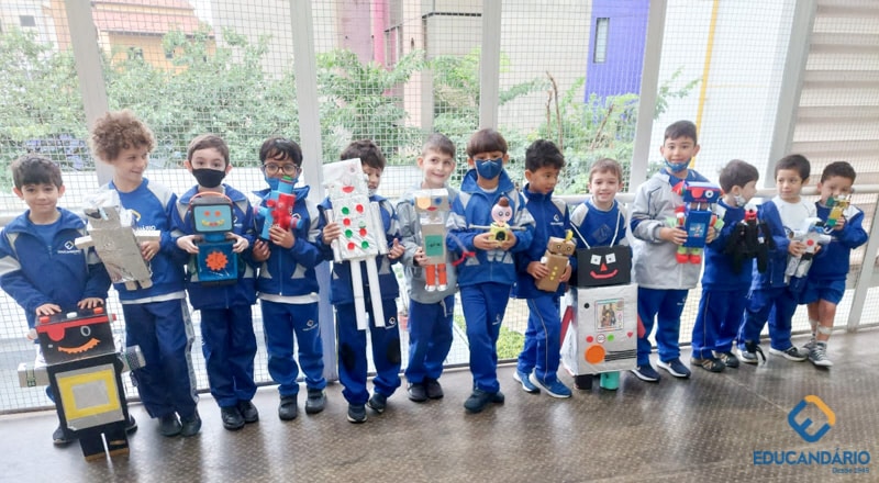Confira a confecção de Robô e o aprendizado na prática dos sentidos – direito e esquerdo do nosso maravilhoso 1º ano.