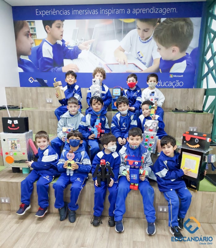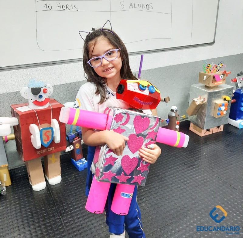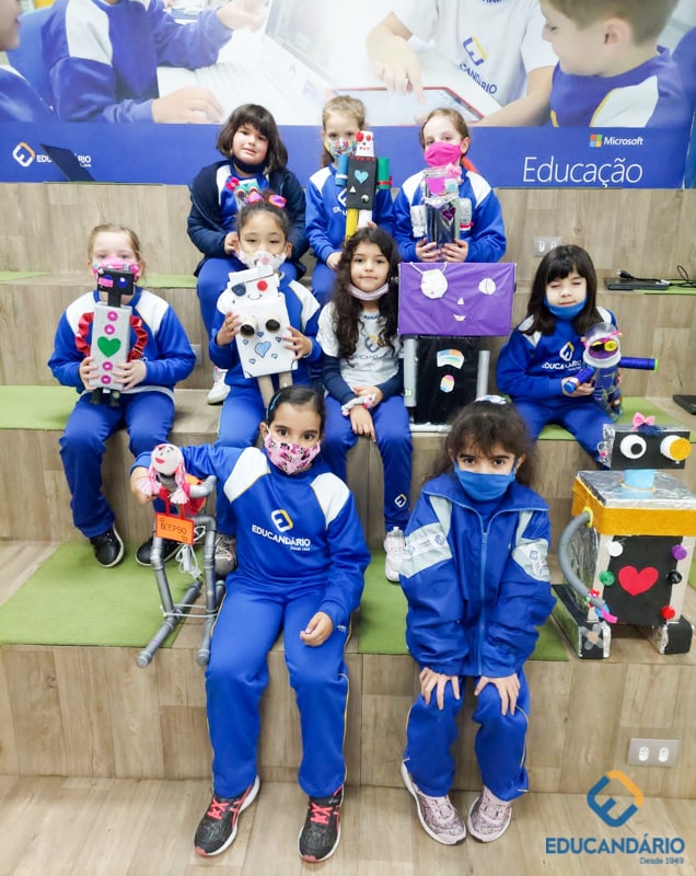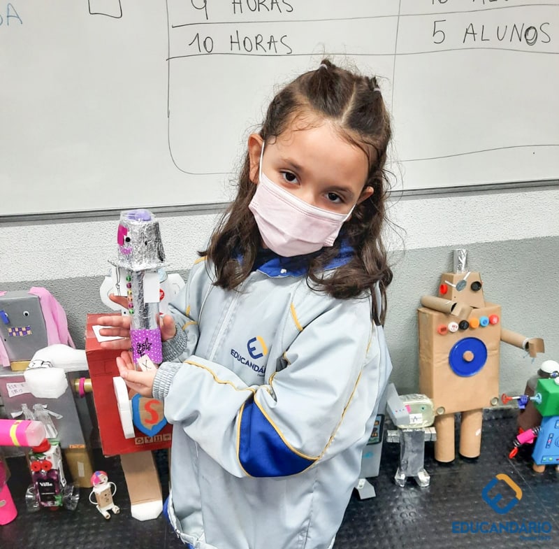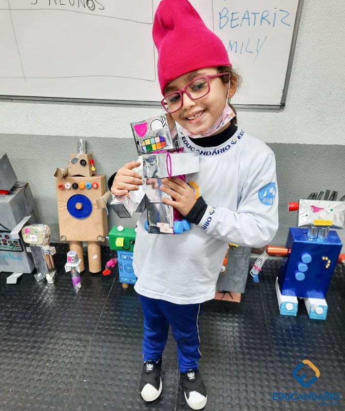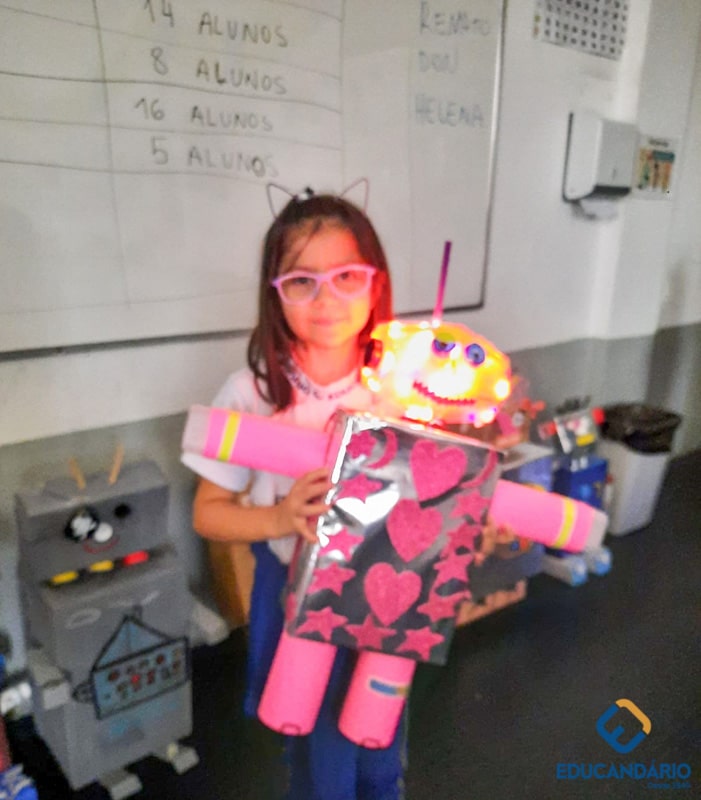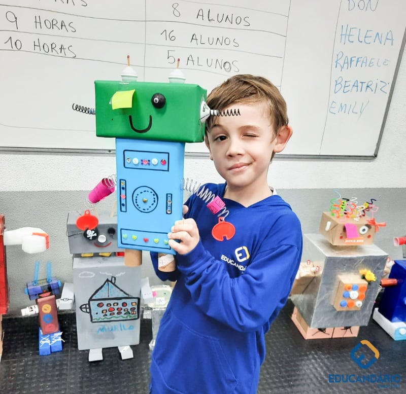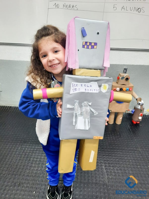 Confira a confecção de Robô e o aprendizado na prática dos sentidos – direito e esquerdo do nosso maravilhoso 1º ano.