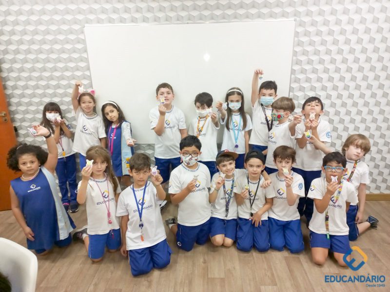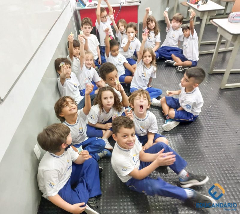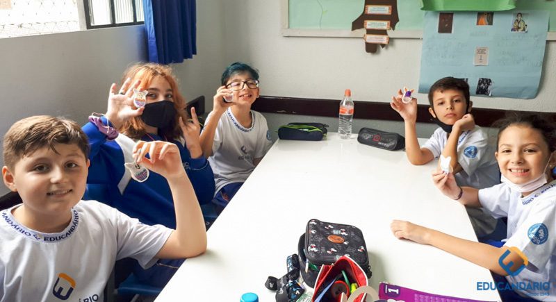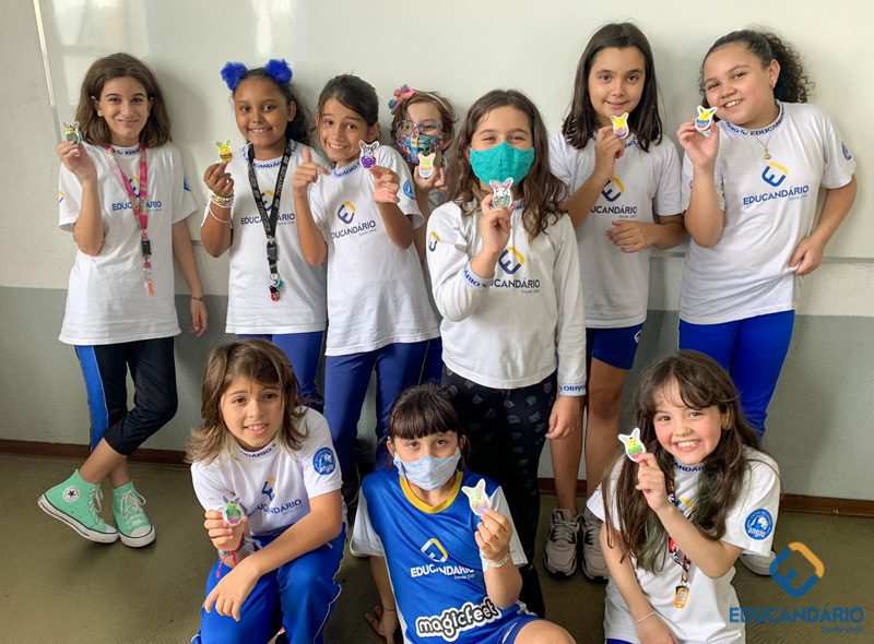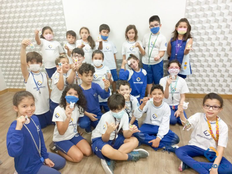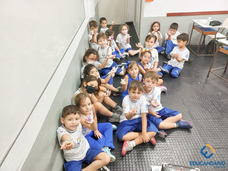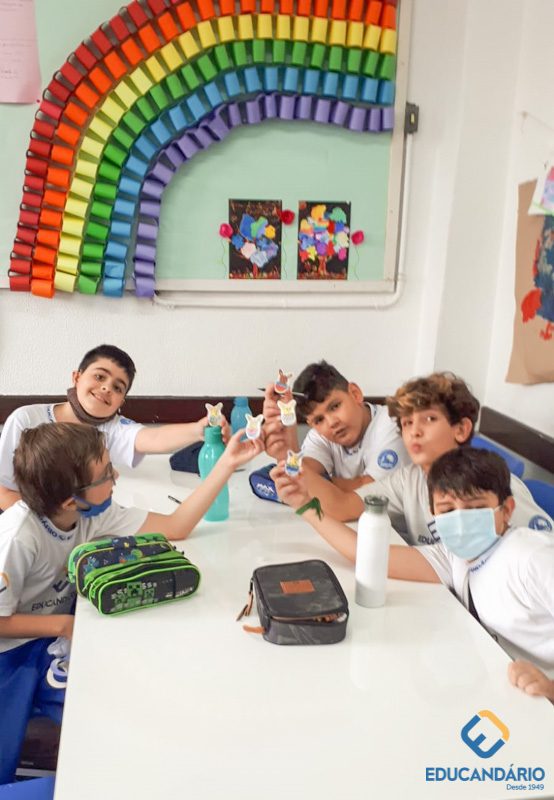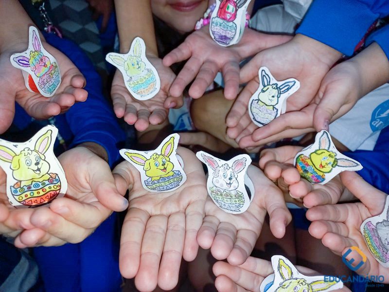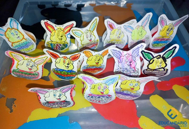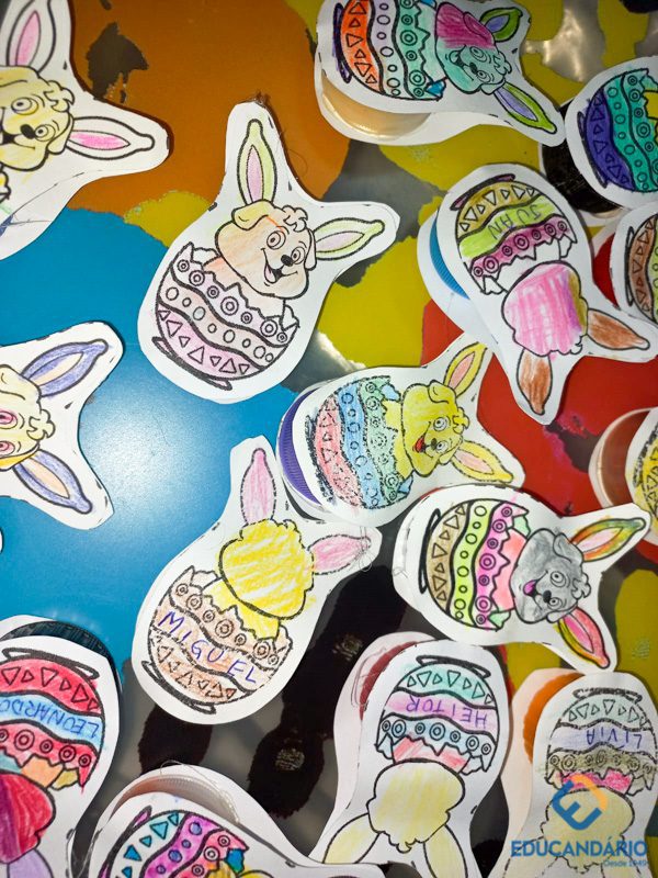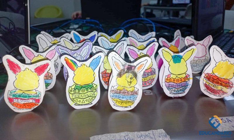 As crianças do nosso ensino fundamental pintaram o Eduzinho (nosso mascote), vestido de coelho e montaram um “João Bobo” com Biscuit e tampinha. (Colaboração: Prô Alessandra).