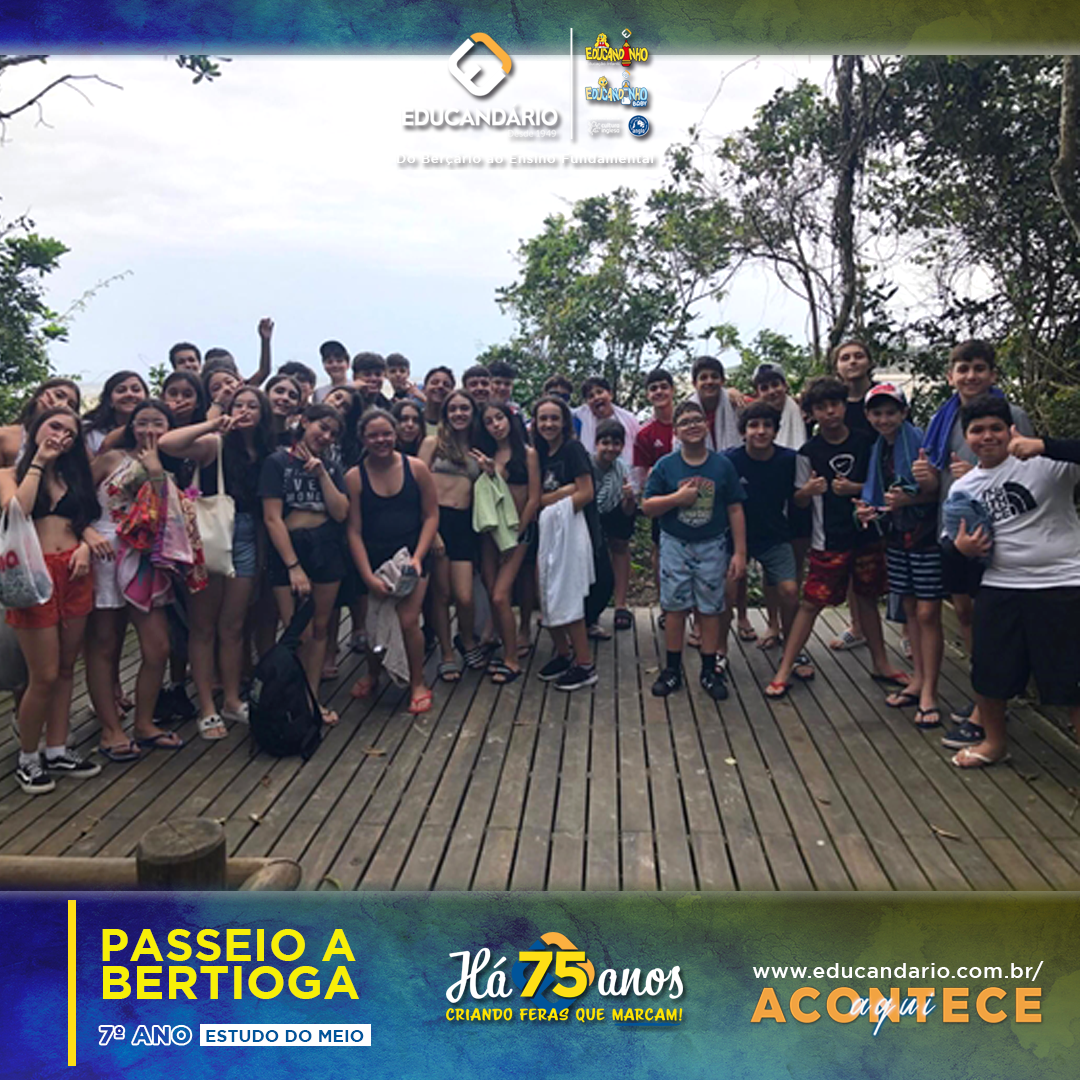 No dia 16/10/2024, os alunos do 7º ano (A e B) participaram de um estudo do meio repleto de descobertas em Bertioga/SP. Pela manhã, caminharam por uma trilha na restinga até a Praia de Itaguaré, onde receberam informações sobre ecossistemas locais, praias arenosas, oceanografia e conservação ambiental. No final da trilha, puderam se refrescar nas águas do rio Itaguaré, um momento de muita diversão e integração com a natureza.