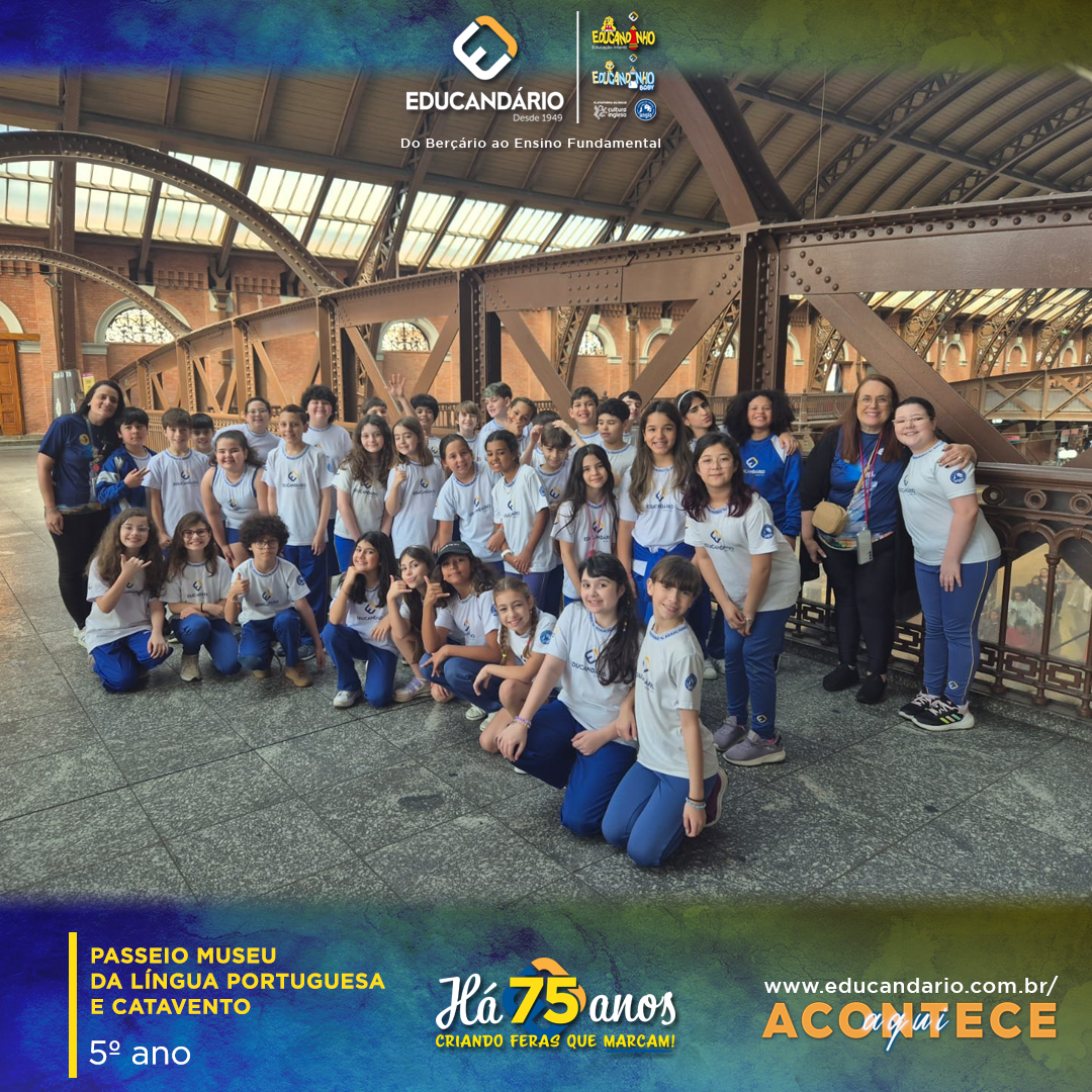Nesta quinta-feira, 16 de outubro, os alunos do 5º ano (A e B) participaram de uma saída pedagógica enriquecedora em São Paulo, visitando dois importantes espaços culturais e educacionais: o Museu da Língua Portuguesa e o Museu Catavento.