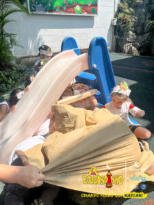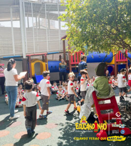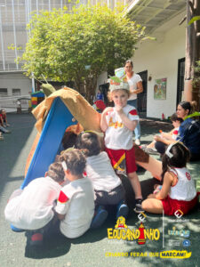 Os alunos do Infantil 3A adoraram conhecer a história da Cigarra e as Formigas. A empolgação foi tanta que quiseram apresentá-la para seus amigos! Durante a narração da professora, os alunos deram vida a algumas cenas da história, proporcionando um momento envolvente e divertido.