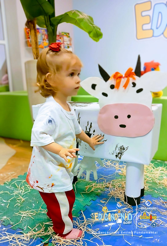 As crianças ouviram a história contada do Sítio do Seu Lobato, deram comidinha de forma lúdica para os animais, confeccionaram, pintaram e, no grande final, cada criança ordenhou a vaca como verdadeiros pequenos fazendeiros!