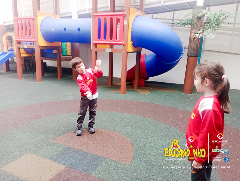 A peteca é uma brincadeira muito antiga que vem dos povos indígenas do Brasil. Eles usavam folhas, penas e fibras naturais para fazer a peteca e jogavam uns com os outros como forma de diversão e também de exercício. Hoje, as crianças continuam essa tradição, confeccionando suas próprias petecas com materiais simples. Além de aprender sobre nossa cultura, elas se divertem, praticam a coordenação motora e o trabalho em equipe!