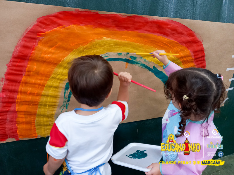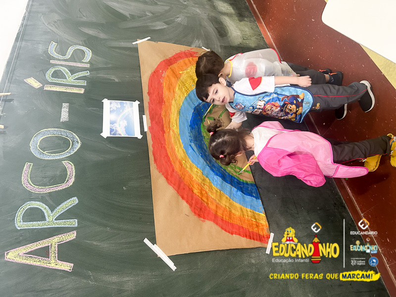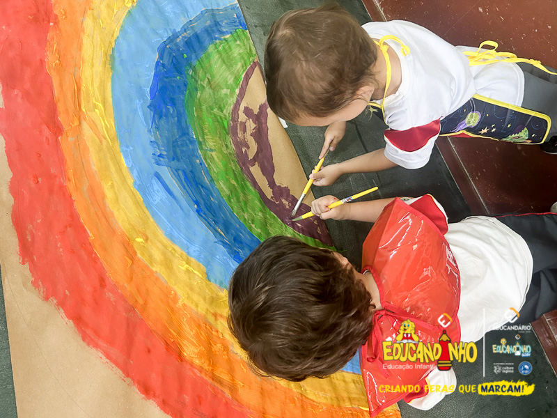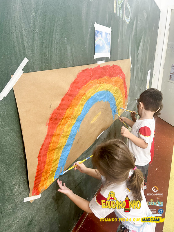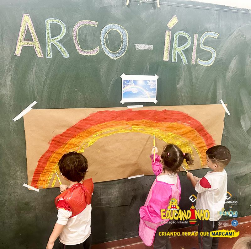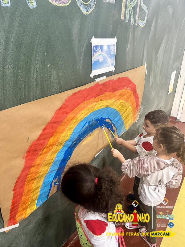 As crianças do Infantil 2 vivenciaram uma experiência rica em cores, criatividade e aprendizado. Através da pintura e da exploração das cores do arco-íris, elas foram introduzidas, de maneira lúdica, aos conceitos do tempo e das mudanças climáticas.