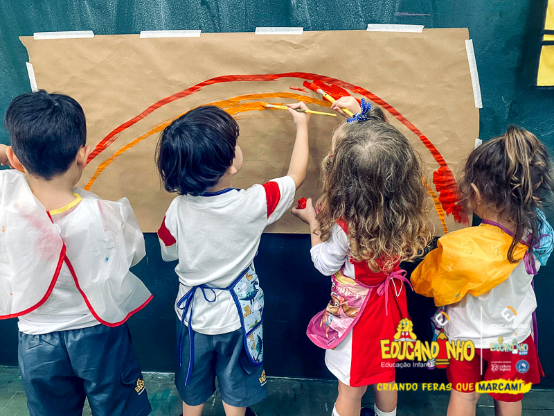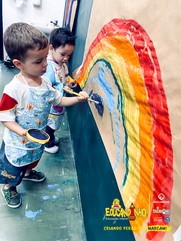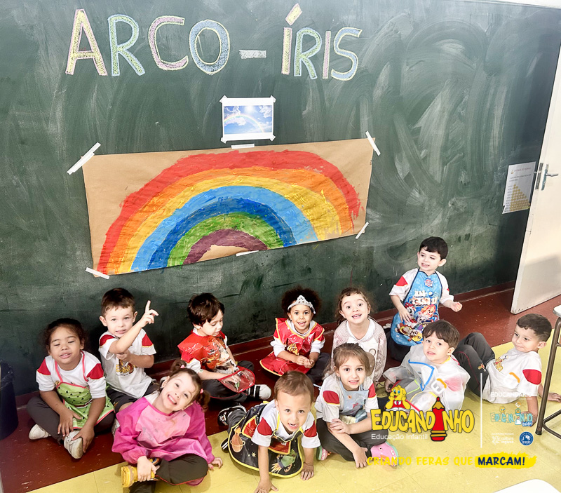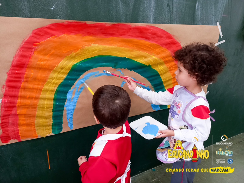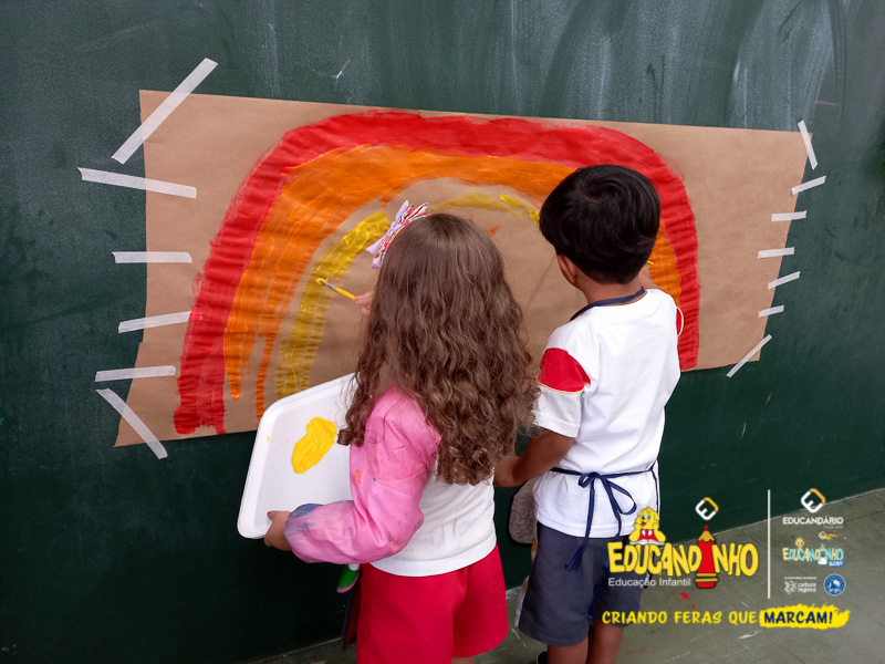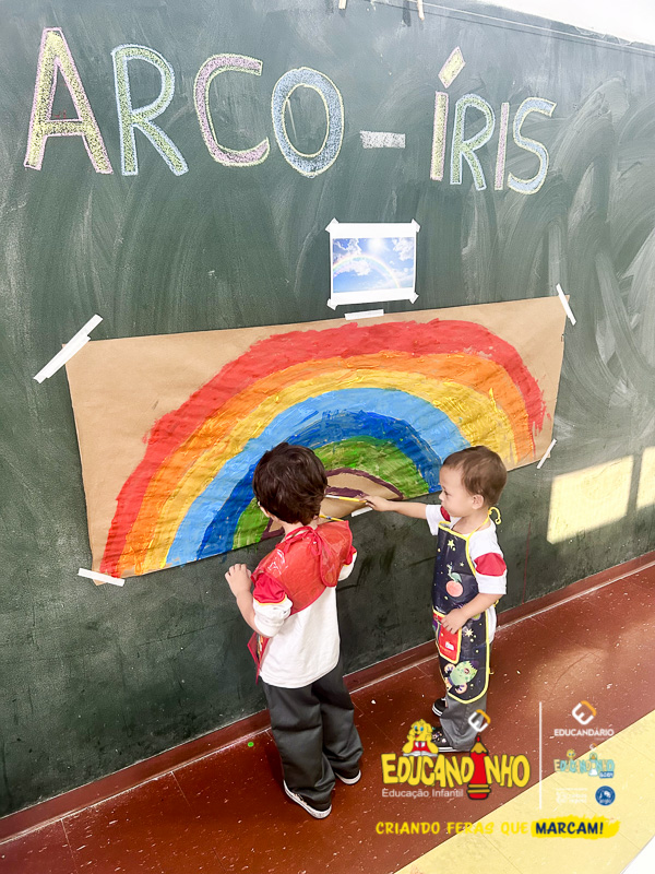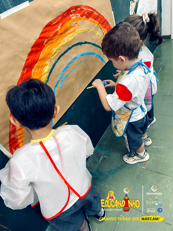 As crianças do Infantil 2 vivenciaram uma experiência rica em cores, criatividade e aprendizado. Através da pintura e da exploração das cores do arco-íris, elas foram introduzidas, de maneira lúdica, aos conceitos do tempo e das mudanças climáticas.