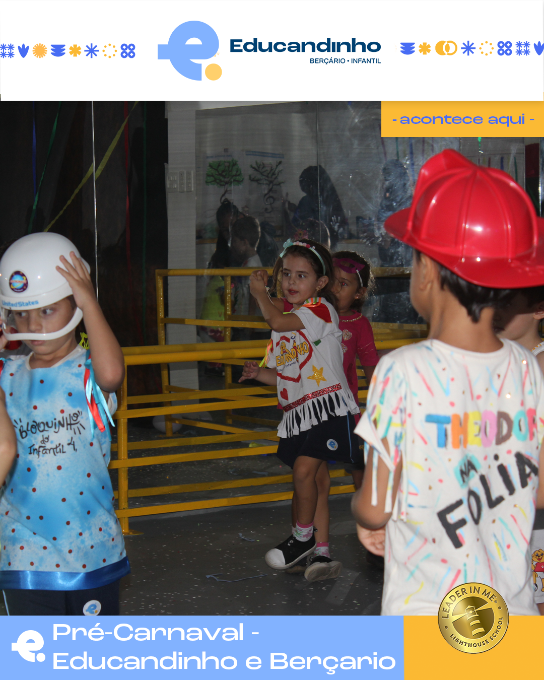 As crianças experimentaram chapéus temáticos, vieram com fantasias e roupas coloridas e aproveitaram cada instante dessa festa cheia de sorrisos, dança e descobertas.