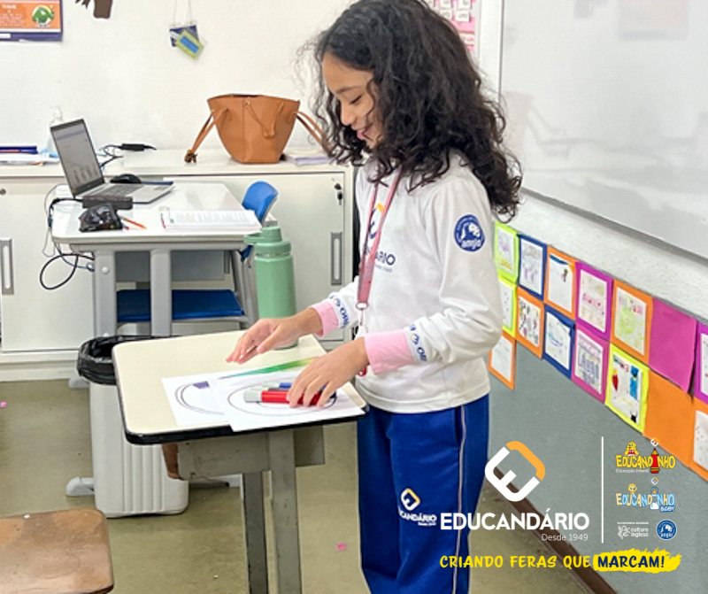 Os alunos do 3º ano aprenderam sobre as partes de uma receita e, em duplas, criaram os ingredientes e acessórios necessários para o preparo da receita “Mingau de Banana Madura“. Ao final, realizaram uma apresentação completa, demonstrando confiança e domínio do conteúdo.