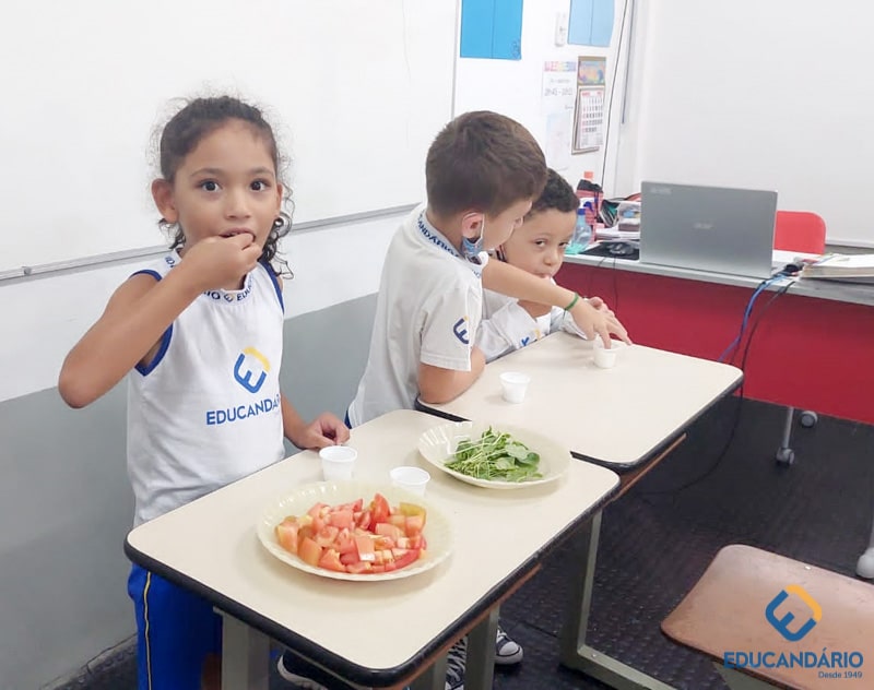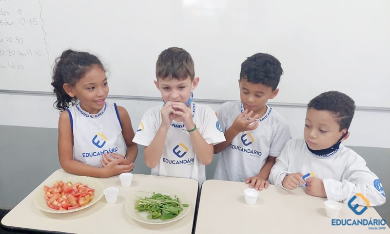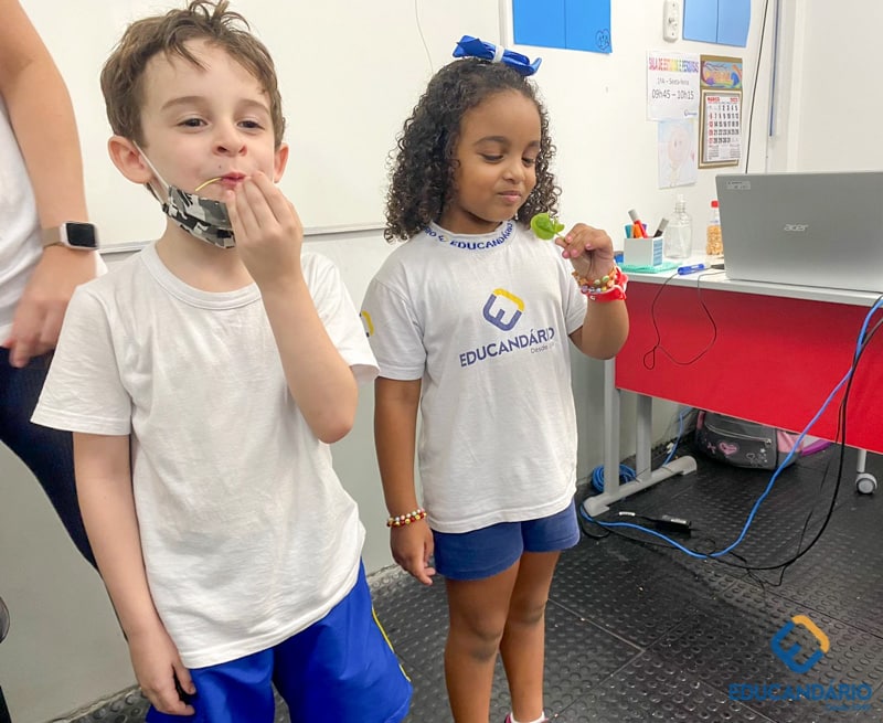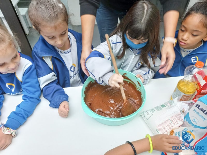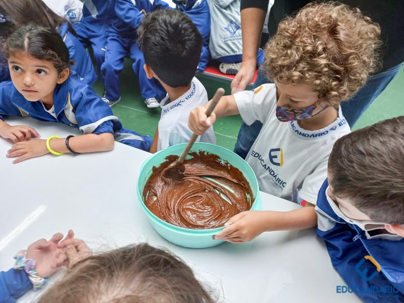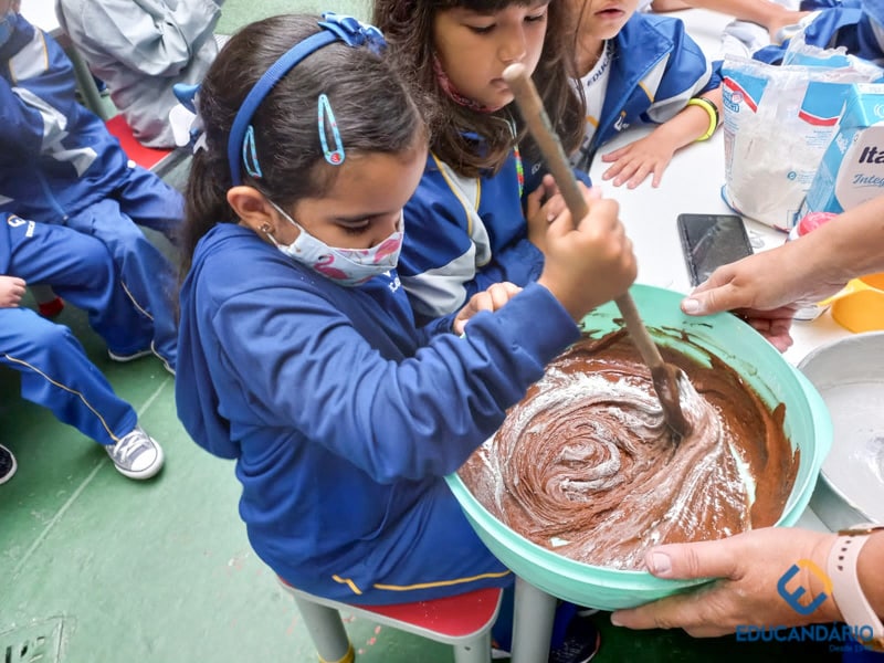 Diversão. Essa foi a definição que o 1º ano aprendeu um dos sentidos mais curioso do corpo humano – Paladar. Aprenderam também o mapa de sabores, confeccionaram uma língua de sogra com a região dos sabores, brincaram de experimentar sabores e finalizaram esse projeto com uma deliciosa culinária doce: Bolo de Chocolate! (Será que o agrião foi o mais votado para ser experimentado? Rs…)