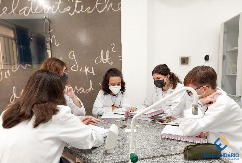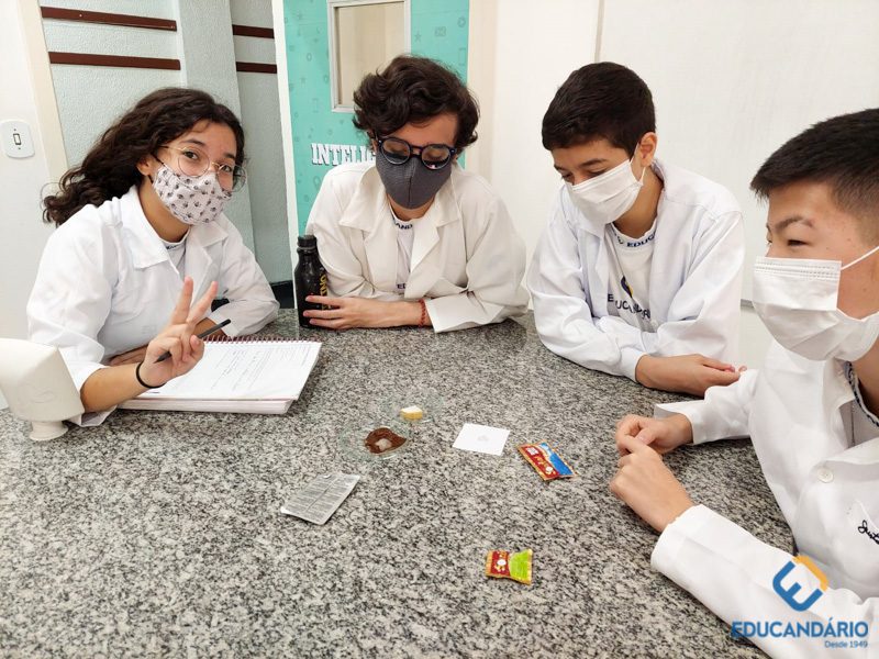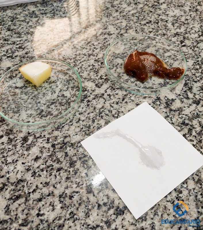 Com o objetivo de trabalhar as etapas do método científico, os alunos do 9º ano realizaram um experimento para testar a reação do peróxido de hidrogênio em três diferentes amostras. Levantaram hipóteses e discutiram os resultados. (Colaboração: Prô Cristiane).