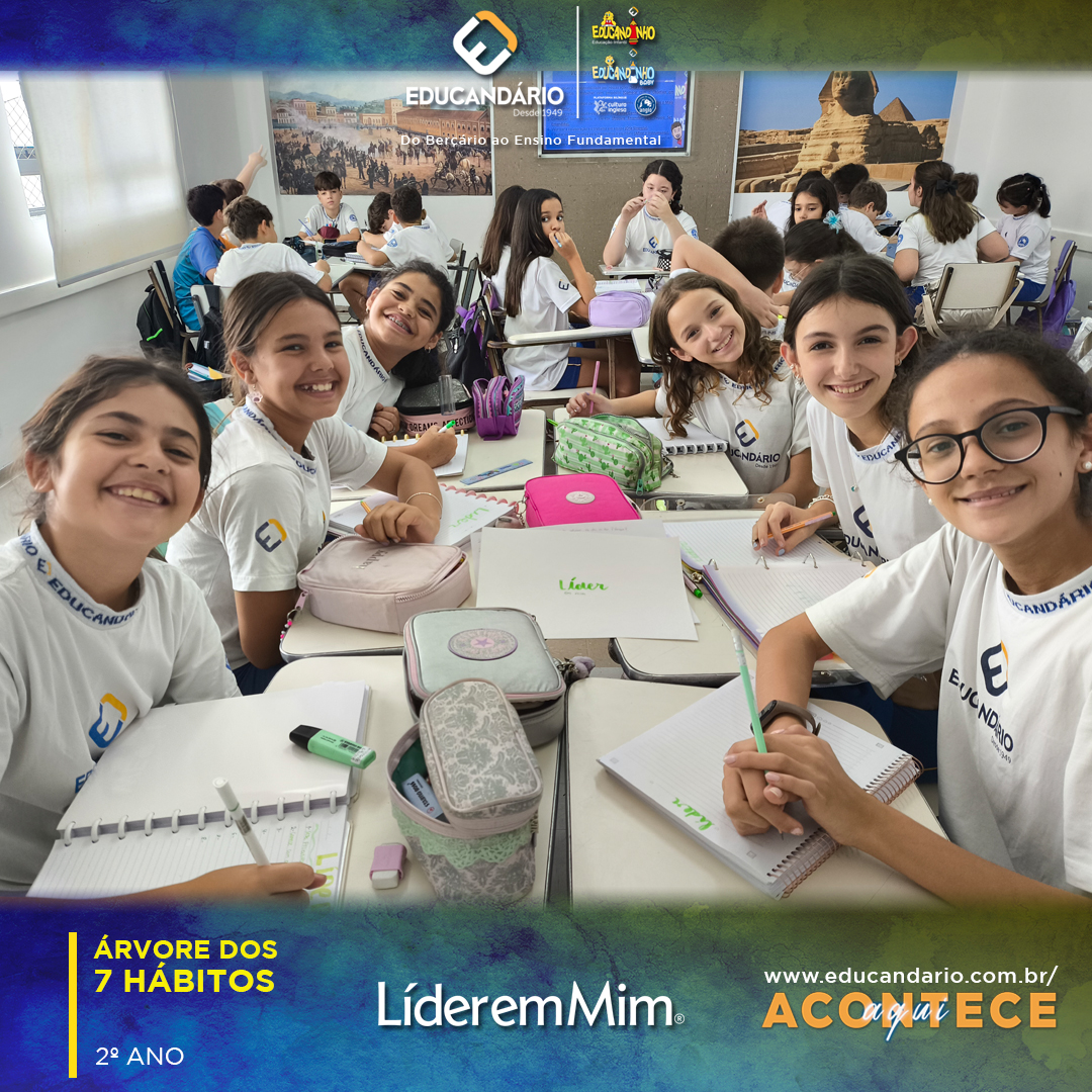 Além disso, a aula proporcionou uma revisão aprofundada dos 8 hábitos do programa O Líder em Mim, conectando cada um deles ao uso responsável da tecnologia. O debate foi enriquecido com exemplos do cotidiano e participação ativa dos alunos, que registraram suas reflexões sobre os 8 hábitos e sua aplicação na rotina escolar e pessoal.