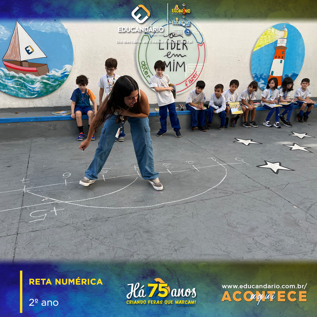 Os alunos do 2º Ano aprenderam a utilizar a Reta Numérica como instrumento para cálculo de adição e subtração na disciplina de Matemática, para aumentarem as possibilidades de estratégias para resolverem as operações.