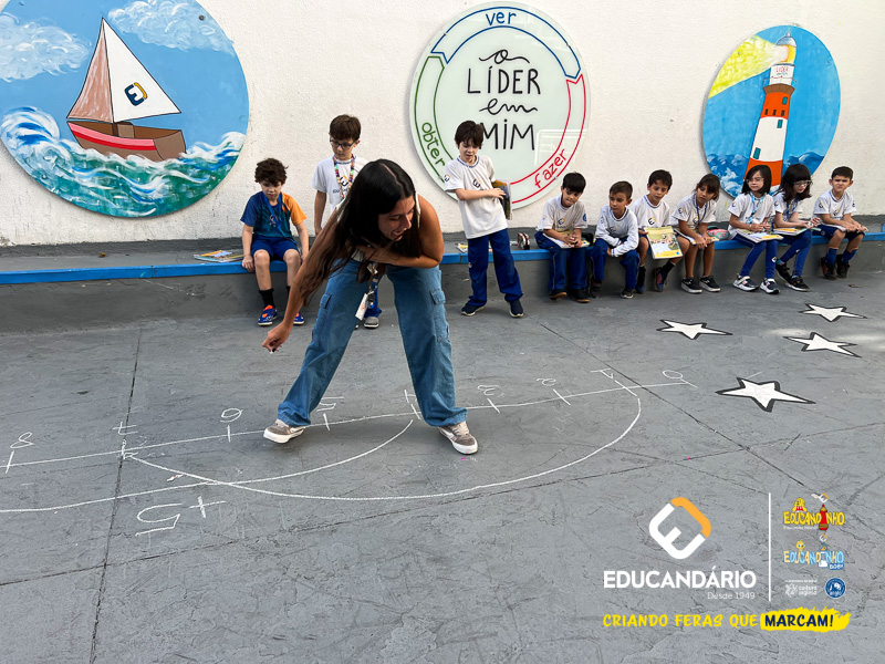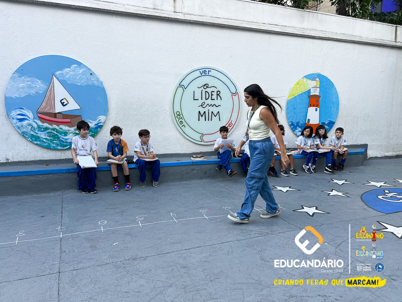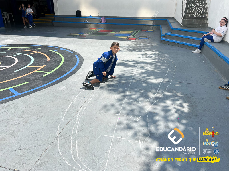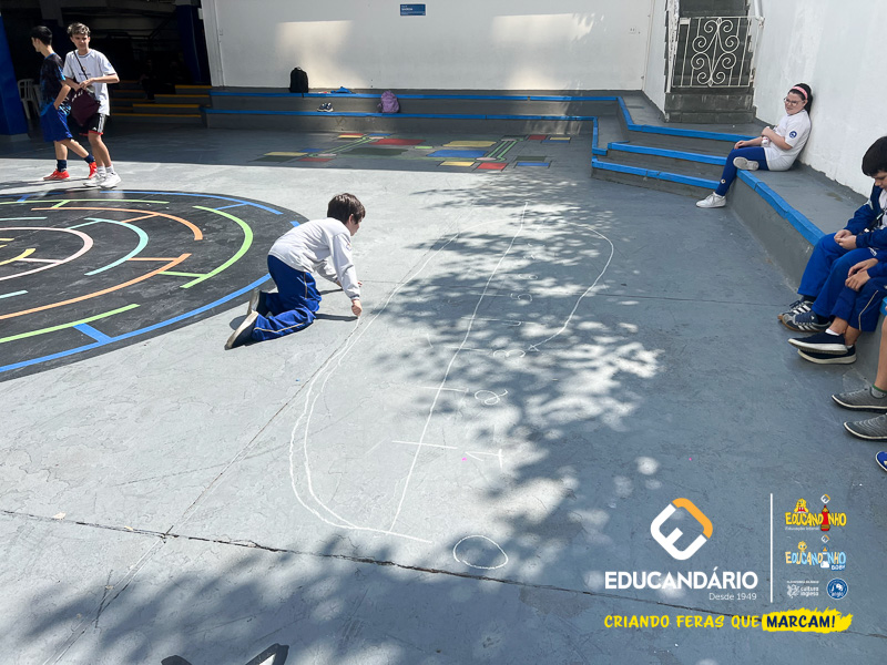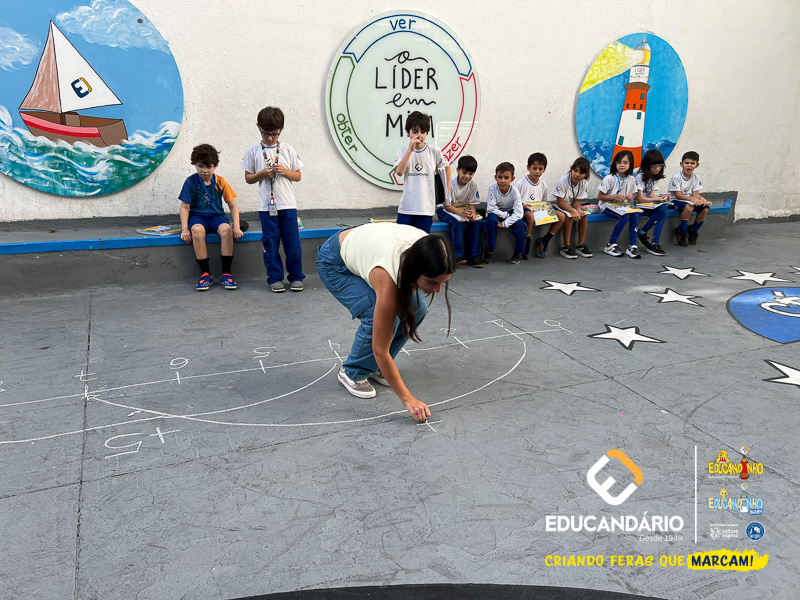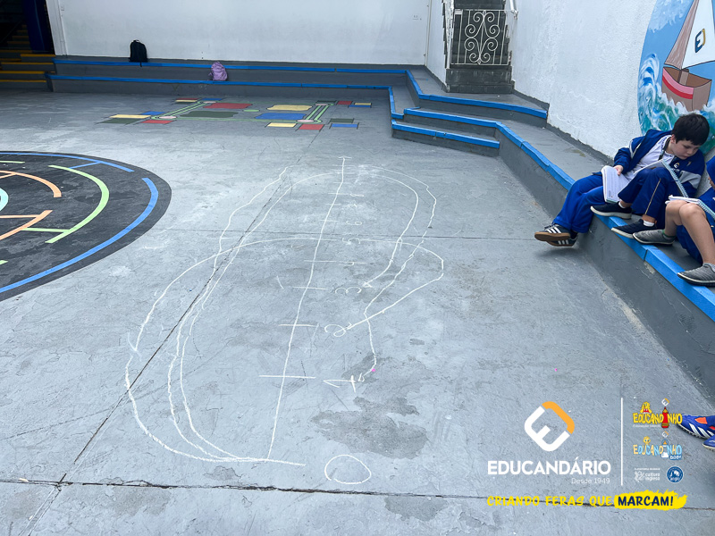 Para isso, a professora desceu com os alunos no pátio da escola e desenhou uma reta numérica grande no chão, realizou novamente a explicação do conteúdo e os exercícios juntamente com os alunos.