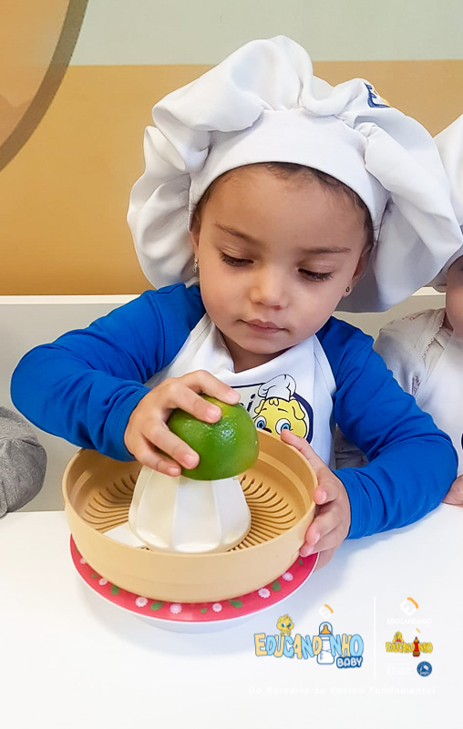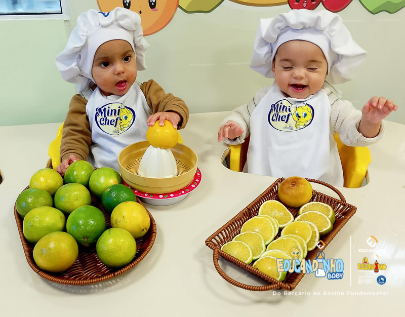 Hoje nossos pequenos resolveram virar cozinheiros! Com aquelas mãozinhas fofas, eles fizeram um suquinho de laranja bem gostoso para os Três Porquinhos!
