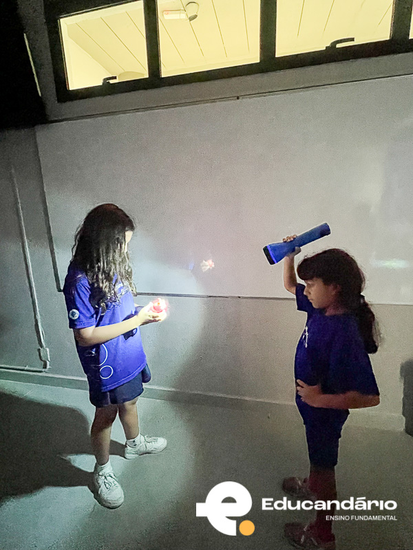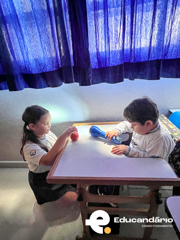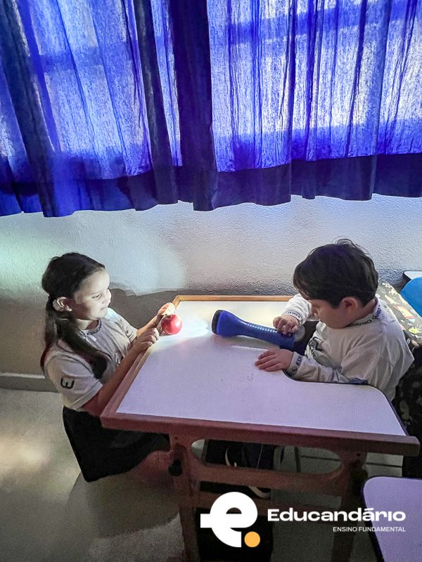 De forma simples e visual, as crianças puderam compreender como acontecem o dia e a noite, percebendo que enquanto um lado da “Terra” recebe luz, o outro permanece no escuro. Foi um momento de muita curiosidade, participação e aprendizado prático!