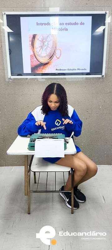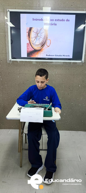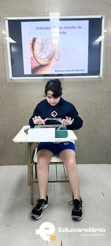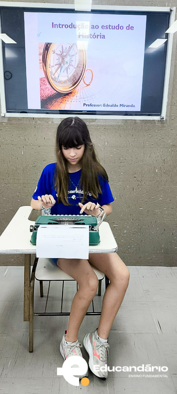 Mas o momento mais especial foi quando levei minha máquina de escrever. Expliquei como ela funciona, contei um pouco da história dela e do porquê ela é tão significativa para mim. E, claro, eles puderam viver a experiência: tocar, ouvir o som das teclas e escrever seus próprios nomes.