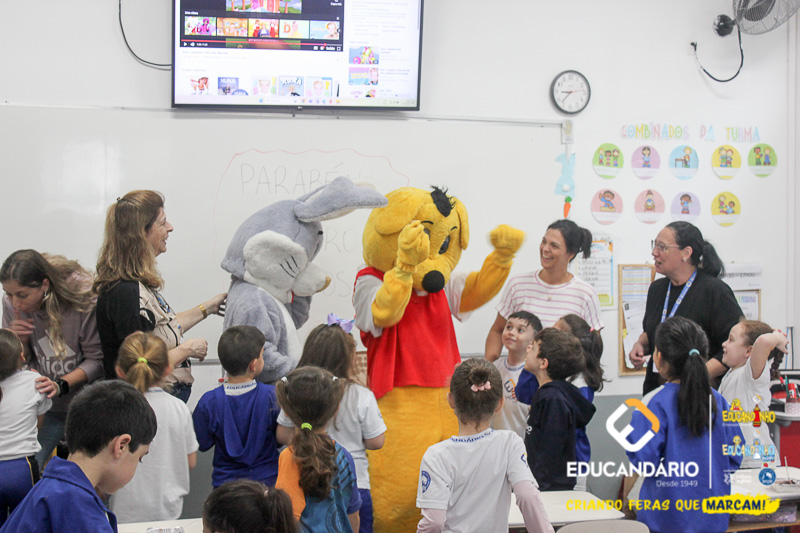 Nesta semana especial, o Educandinho-Anglo e o Educandário-Anglo receberam uma visita que encheu nossos corações de alegria: o Coelho da Páscoa chegou trazendo chocolates, sorrisos e muita emoção — e ainda contou com a companhia do nosso mascote Eduzinho!