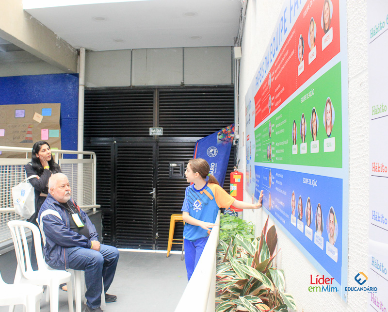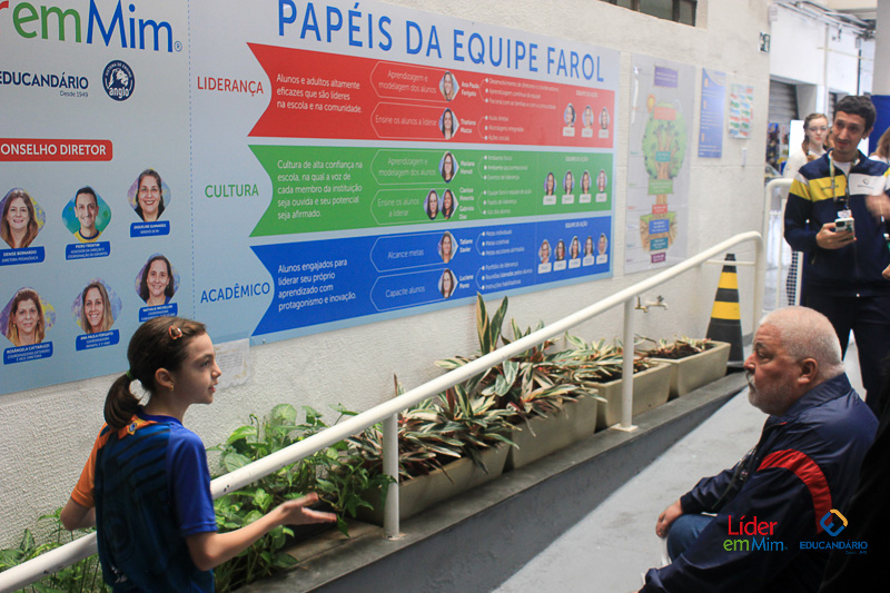 Durante a visita, os alunos do Educandinho-Anglo organizaram um caloroso corredor de recepção, enquanto os estudantes do Educandário-Anglo apresentaram projetos que evidenciam a aplicação prática dos 7 hábitos promovidos pelo programa.