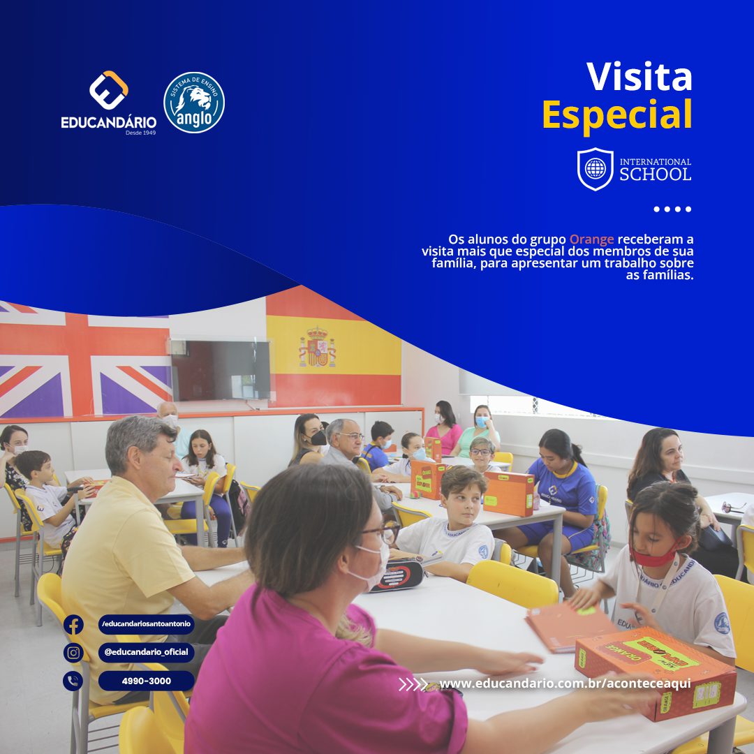 Os alunos do grupo Orange do nosso Programa Bilíngue – International School, receberam a visita mais que especial dos membros de sua família, para apresentar um trabalho sobre as famílias.